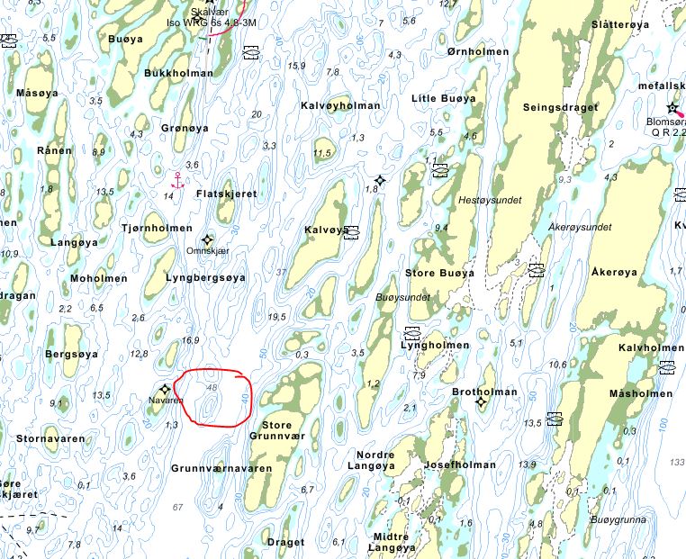 ich hänge hier mal ne "Skizze" an. Punkt 1. ist Annie's Haus. Punkt 2. Stig u. Frid. Rechts ist Rosøya und östlich davon der Sund, wo ich auch den schraffierten Bereich eingemalt habe. Das ist die Stelle mit den Köhlern. Anfahrt geht mehrfach, einmal Richtung Süden um Segeløya, oder um die Fischzuchtanlageund dann nach Süden....oder eben ganz um Rosøyas Nordspitze