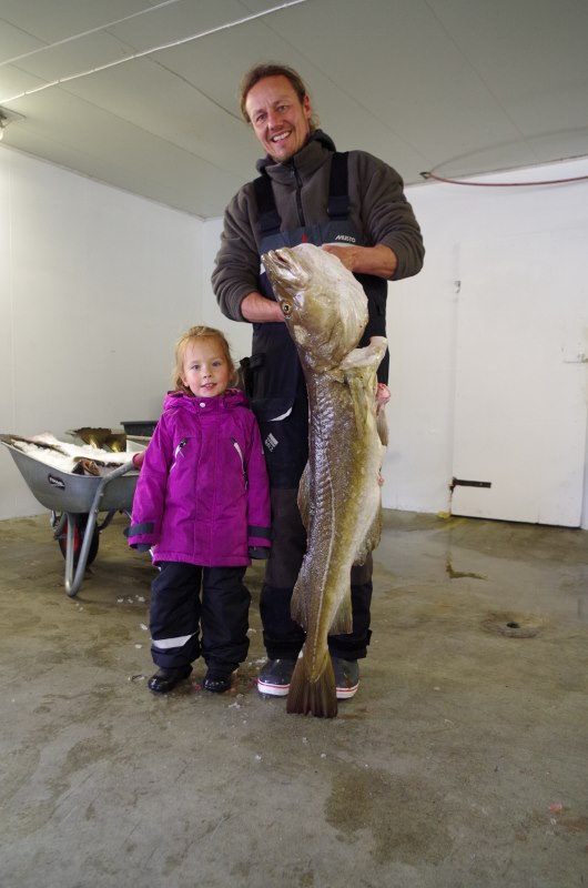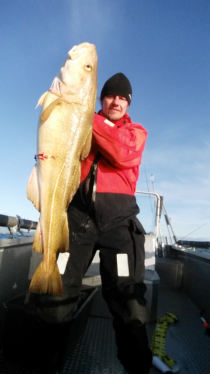 Heute war schwierig, wind machte es nicht leicht. Aber wir konnten dennoch schöne Dorsche fangen, so 60-95cm. Die ersten heilbutt-kontakte sind auch schon da, eine große entkam am boot, und der andere war nur 50cm, und der schwimmt wieder nachdem ein foto gemacht würde.