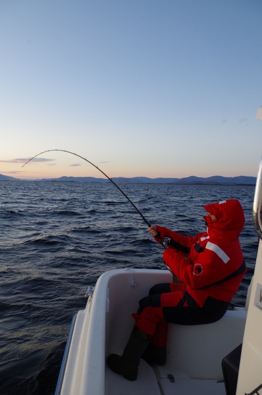 Heute gabe es endlich große fische, aber sie mussten erarbeitet worden. Unsere truppe hatte 2 großere Dorsche, 107cm/9kg unf 100cm/9kg. Heilbutt gab es auch, 85cm/5,5kg und 105cm/11.5kg