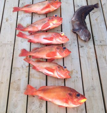Gestern war auch wieder super wir haben 6 tolle Rotbarsche gefangen, hat mit Montage und 6 driften gut geklappt. Wie schon gesagt noch einen Heilbutt und als besonderes noch einen Steinbeisser. Bemerkenswert war noch das beim Rotbarschangeln ein 90 cm Seelachs bei mir mit eingestiegen ist. War schon gute kurbelei, die 600 gramm 2 Rotbarsche von 2 kg + Seelachs hochzukurbeln :)