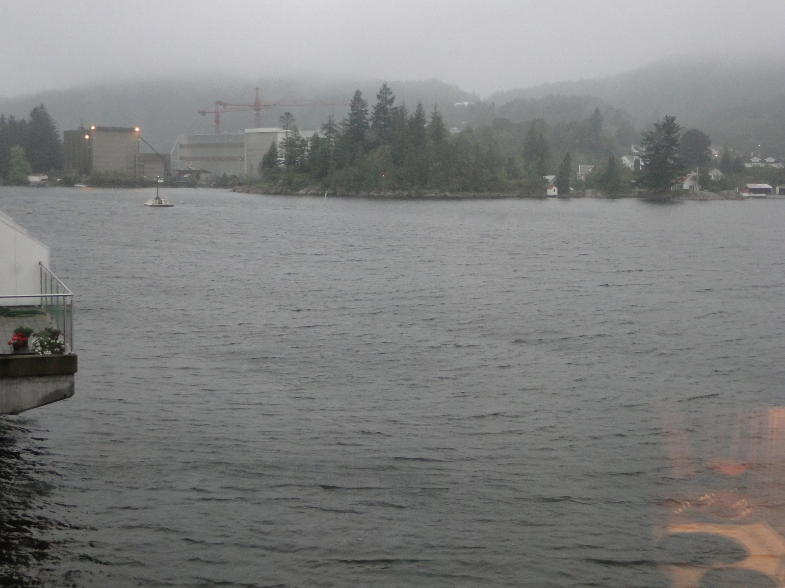 So heute war Shoppingtour nach Stavanger angesagt . Was bei dem Wetter (siehe Bild 1) als das einzig vernünftigen erschien . Einen Vorteil könnte das Regenwetter haben ,denn [FONT=&quot] Hjalmar sagte bei unserer Ankunft das sich noch ne Menge Lachse im Fjord rumtreiben ,aber die Beißen im Moment schlecht .