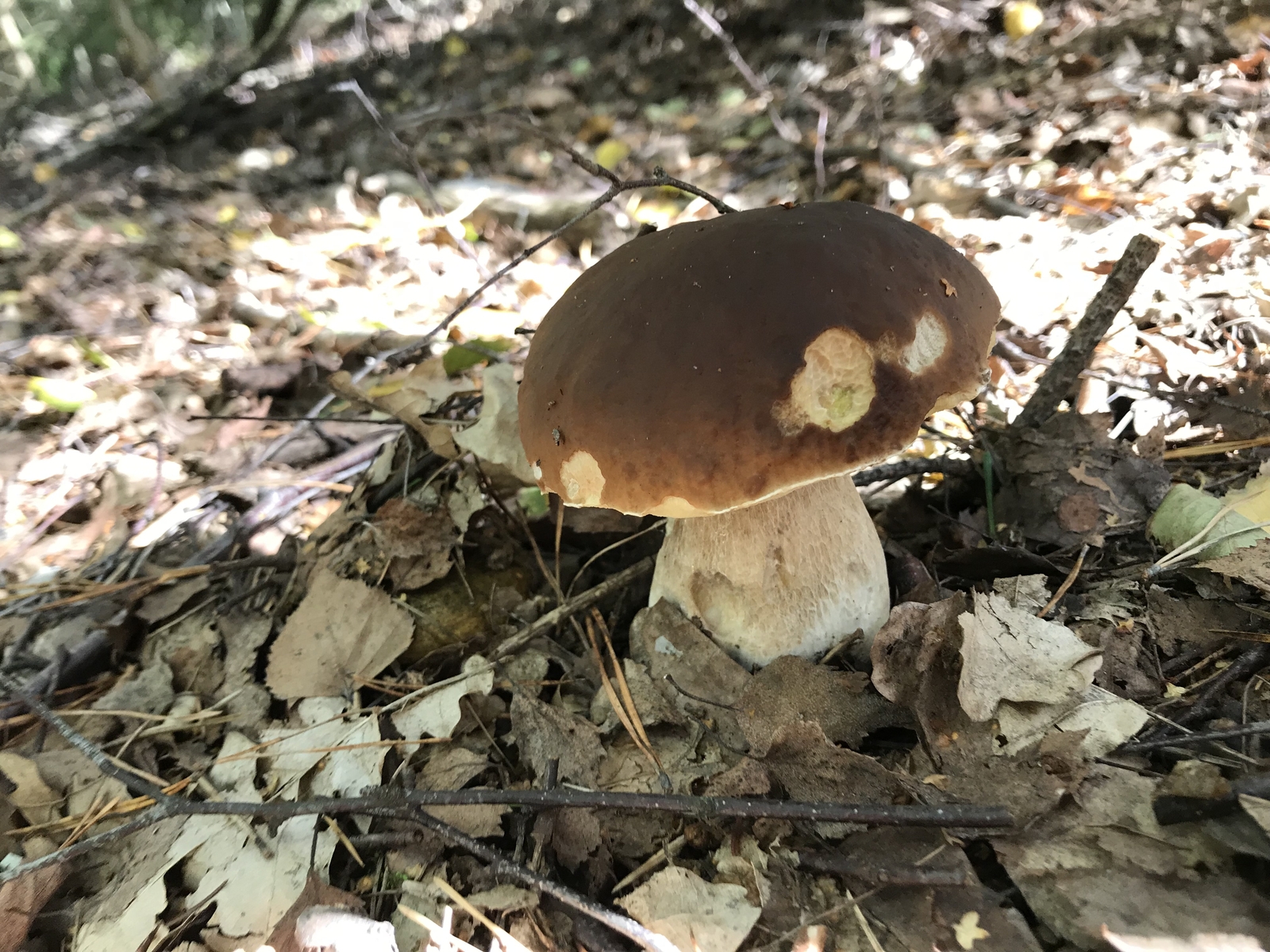 madigen und von Mistkäfern ausgehöhlten Steinpilzen vorgefunden; wir entdeckten den Fleck leider