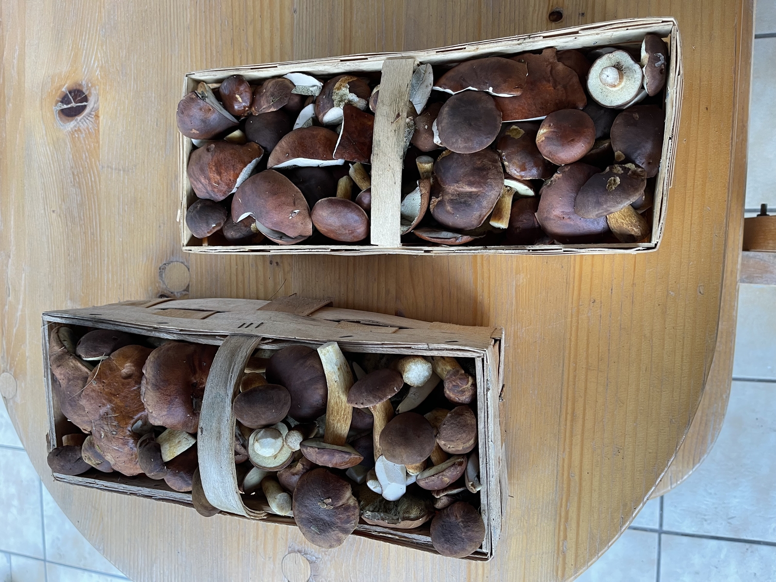 Gehacktes-400gr,,etwas Milch,alte Semmel,3 Eeier ordentlich Zwiebel und natürlich 400gr Hallimasch.