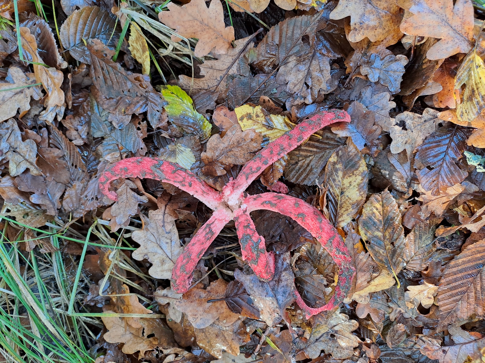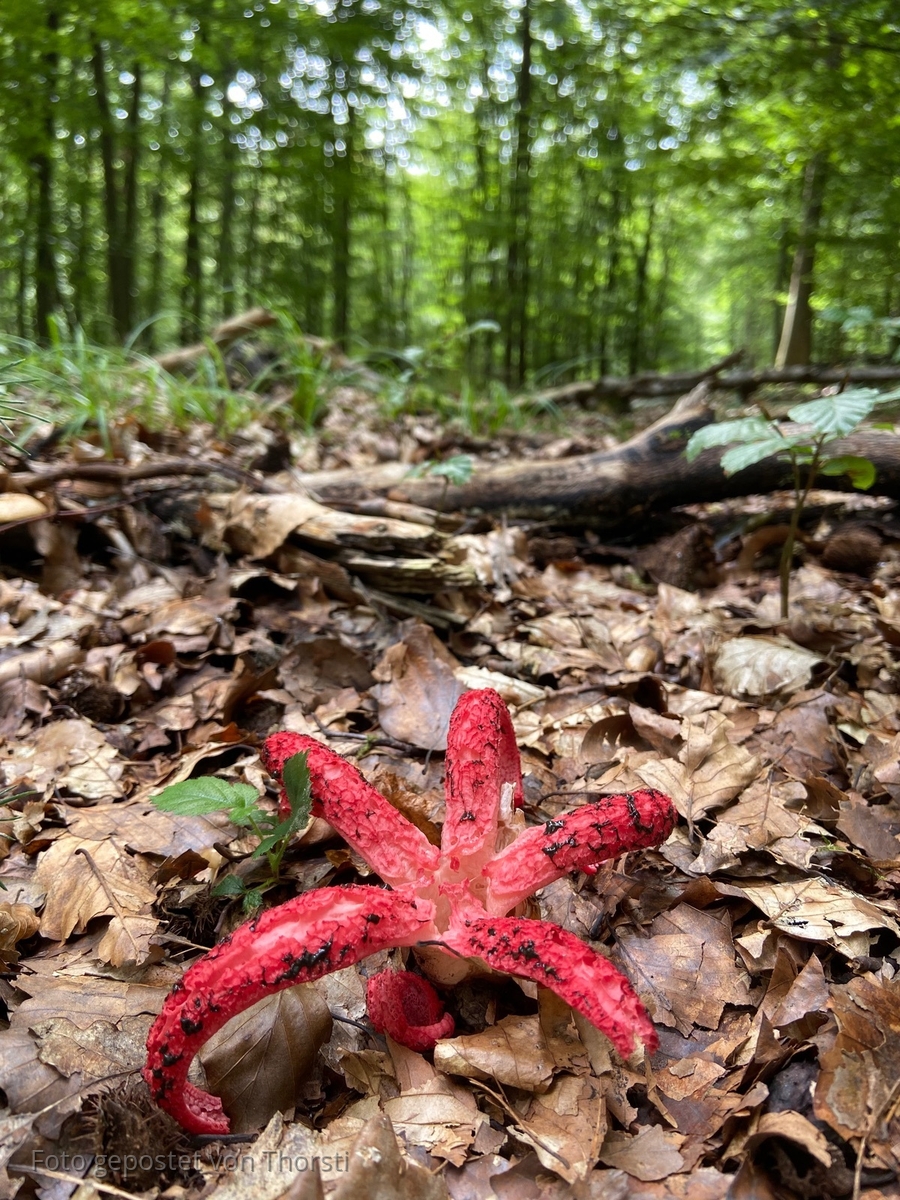 Die heutige Runde mit dem Hunde führte mich wieder einmal über unsere Lieblingsroute durch den Wald in den Donauleiten gleich unterhalb Passaus. Seit meiner Sturm- und Drangzeit als Jugendlicher bin ich nicht mehr in diesem Bereich der Donauleiten gewesen, erst die letzten Jahre mit dem Hund wieder. Trotz geübtem Blick als passionierter Pilzsammler habe ich da nie Speisepilze entdeckt. Ihr könnt euch vorstellen, wie erstaunt ich war, als da dieses Jahr plötzlich Parasol am Wegrand standen. Das hat sich mehrmals wiederholt, einmal habe ich sogar ein volles Dutzend gefunden. Meine bessere Hälfte meinte einmal belustigt: „Ich dachte du machst eine Runde mit dem Hund, stattdessen bist du beim Pilzesuchen!“ Natürlich habe ich auch heute nach den Riesenschirmlingen Ausschau gehalten, auch wenn es schon seit über einer Woche nicht mehr geregnet hat. Und natürlich war keiner zu entdecken. Doch ein Stück weiter ist da etwas im Laub am Boden. Wie vom Donner gerührt bleibe ich stehen und kann es überhaupt nicht fassen. Es ist noch keine zwei Wochen her, seit ich durch Thorsti‘s Foto erstmals von einem Pilz namens Narrenkappe oder Tintenfischpilz gehört hatte. Und jetzt steht da so ein Ding in Natura. Zum Glück hatte ich das Handy dabei und kann den Beleg liefern!
