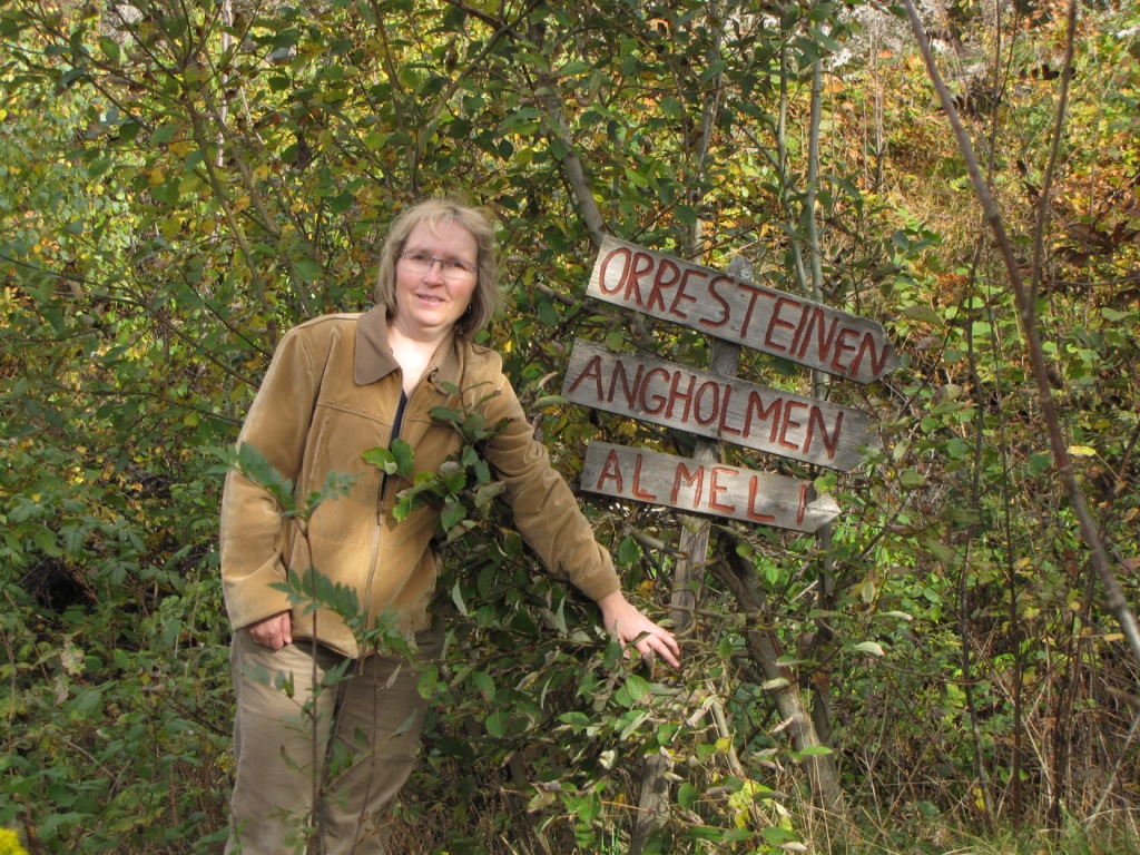Für den Nachmittag hatten wir uns eine Wanderung zum Orresteinen vorgenommen, also ging es gegen halb zwei los. Denn Einstieg hatten wir dank Bezets guter Beschreibung auch schnell gefunden und auch der erste Wegweiser (Bild) tauchte bald auf. Zuerst „bestiegen“ wir den Geiteknuten (Bilder) und folgten dann immer weiter dem Hauptweg. Leider kam kein Wegweiser mehr und es wunderte uns schon, dass es eigentlich immer so eben dahin ging. Zwischendrin kamen immer mal ein paar Felsen, von denen man wirklich geile Aussichten auf den Fjord hatte. Das sind die über der Bucht vorm Hafen. Leider war aber von unserem Orresteinen nix zu sehen. Wir wähnten uns aber nach wie vor auf dem richtigen Weg, da er hangseitig mit Felsbrocken ausgebaut war und später sogar die Artefakte eines Geländers (eingemauerte Pfosten ohne Handlauf) auftauchten. Selbst ein Autositz (Bild) und ein altes Fenster tauchten neben dem Weg auf. Und dann war plötzlich Schluss! Wie abgehackt endete der Weg ein Stück über der Straße. Ich habe mir das später mal auf einer Luftaufnahme angeschaut und mir wurde klar, was passiert war. Der Weg endete genau auf dem Felsen kurz vor der Werft, der irgendwann mal wegen der Straße gesprengt wurde. Damals ging er wahrscheinlich auf der anderen Seite weiter.