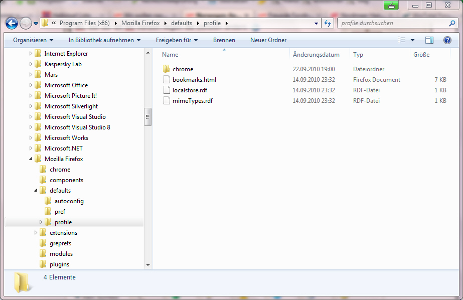Einstellungen\USERNAME\Anwendungsdaten findest du auch Firefox. Du musst vorher die Anzeige so stellen, dass auch versteckte Dateien angezeigt werden.