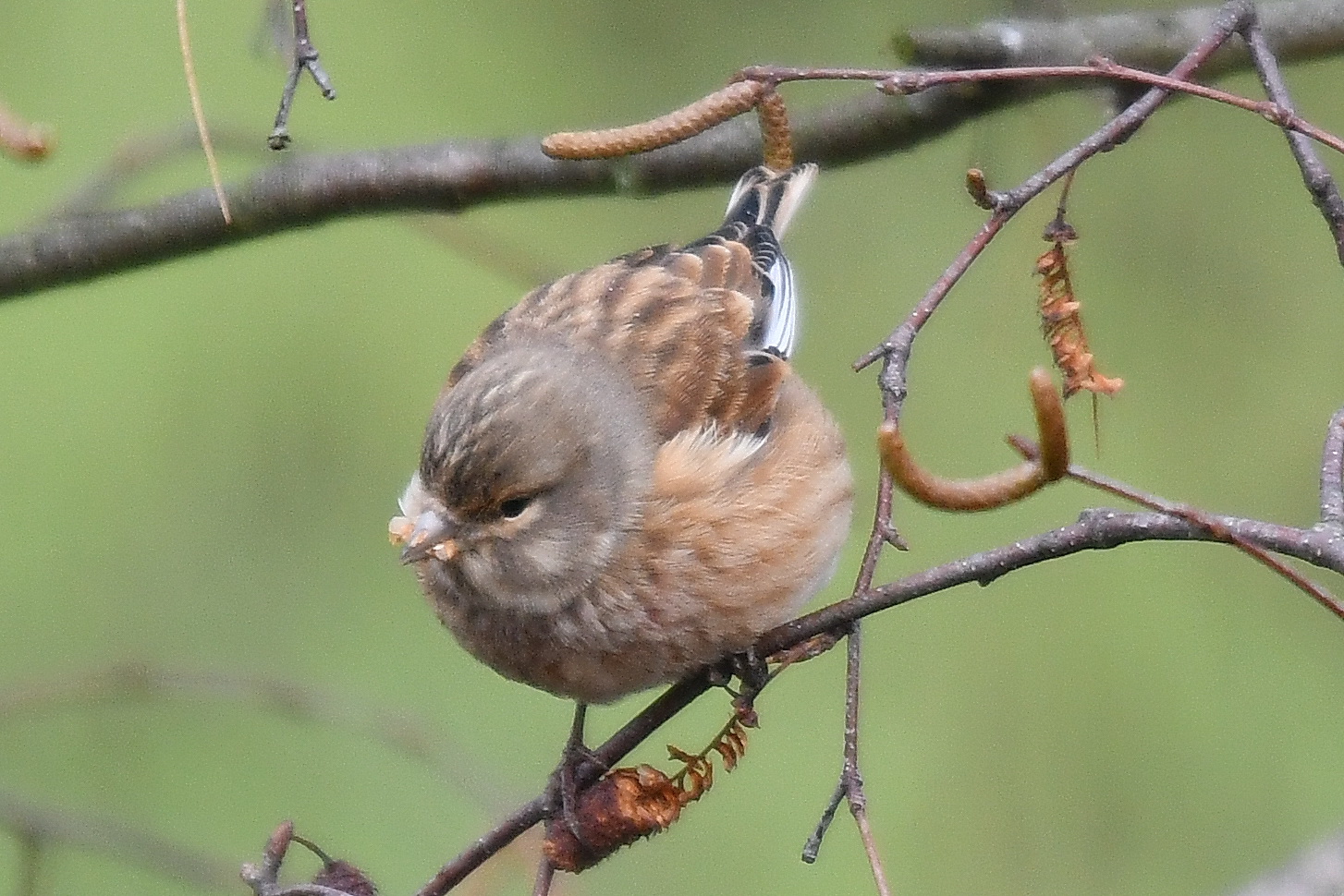 Ich sehe da so aus meinem Fester - und was treibt sich da in der Birke herum - 7 Wintergäste aus Norwegen (Berghänfling):