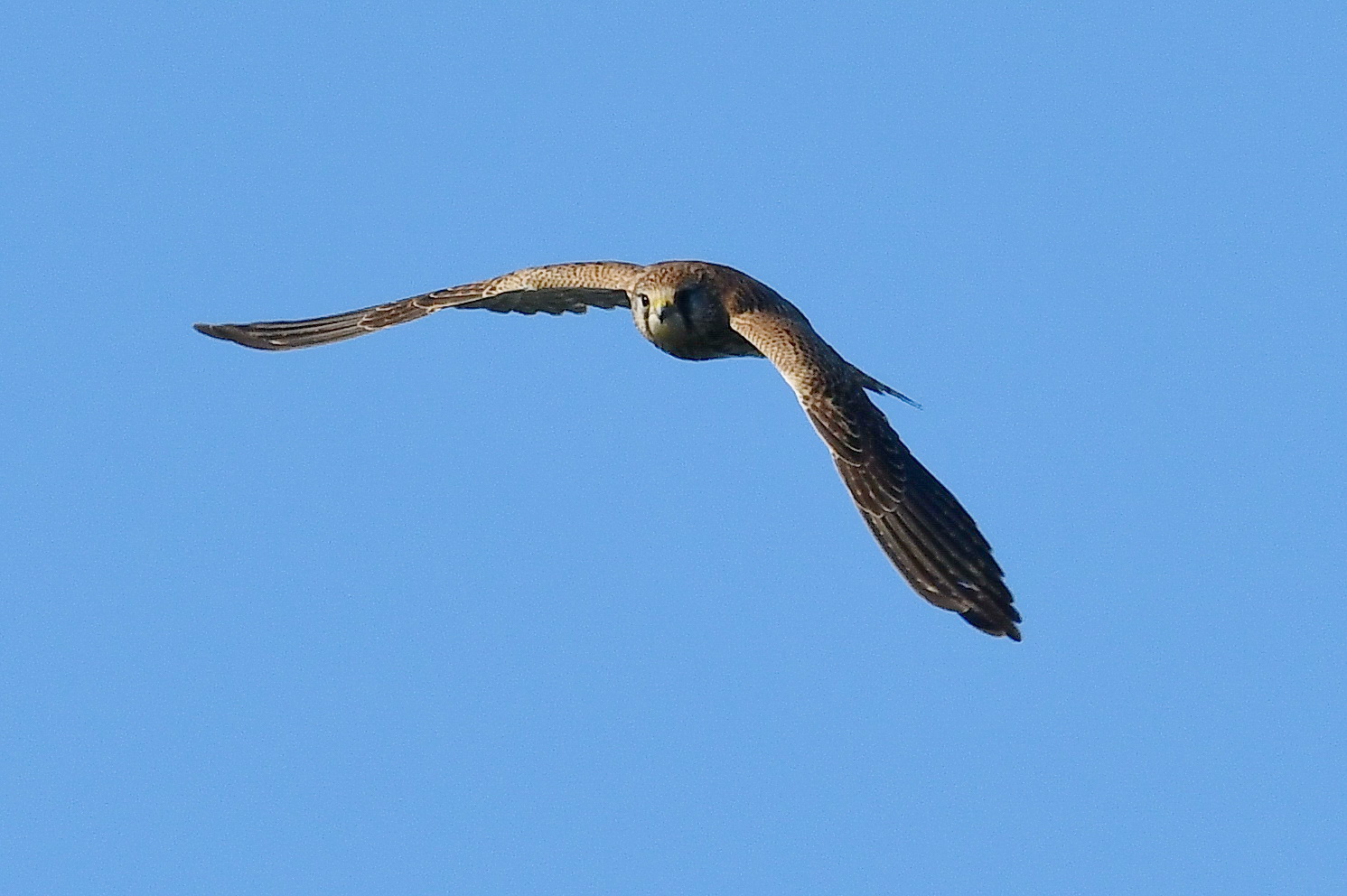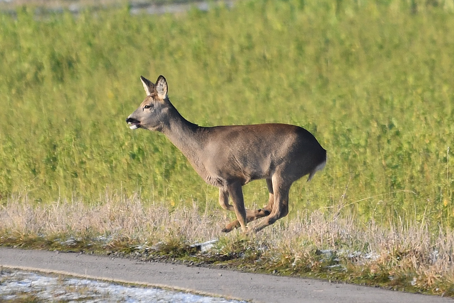 Ein Reh kreuzt den Weg und über uns ein Turmfalke: