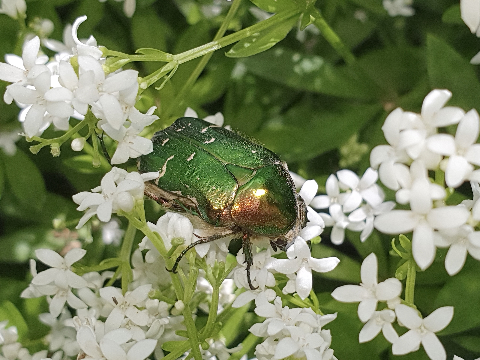 Dieser Rosenkäfer machte es sich heute im Waldmeister gemütlich und ließ es sich schmecken.