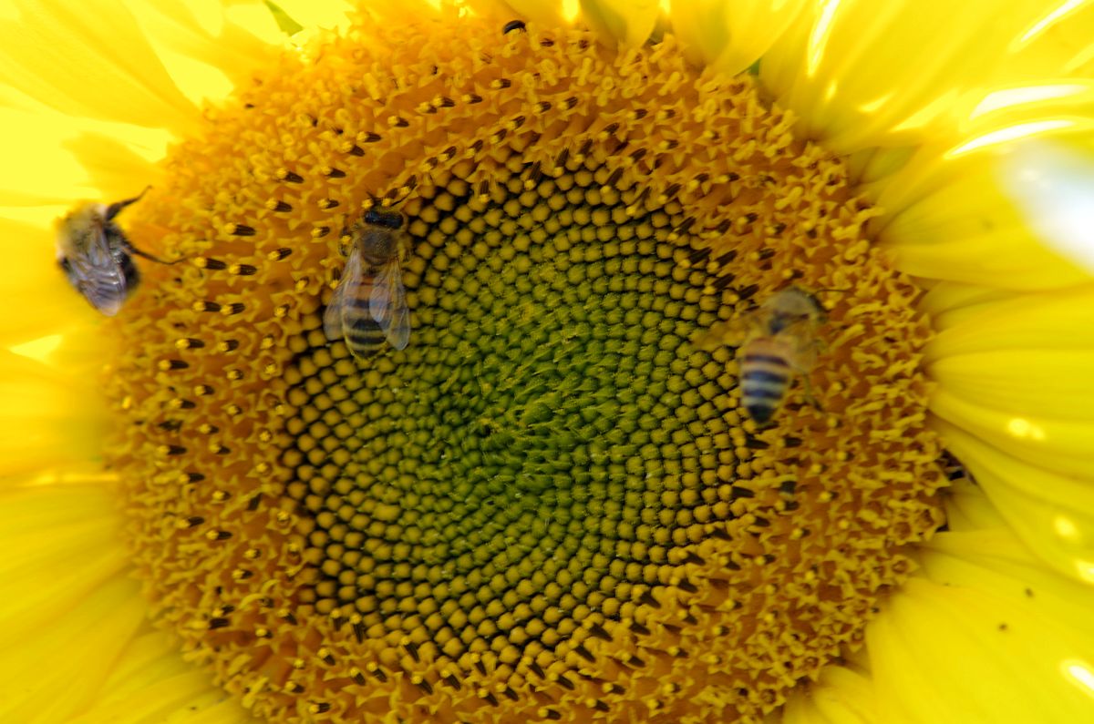 Schon frech am hellichten Tage eine 20cm gewachsene Sonnenblume hochzuklettern und dann das frische Grün abzufressen.