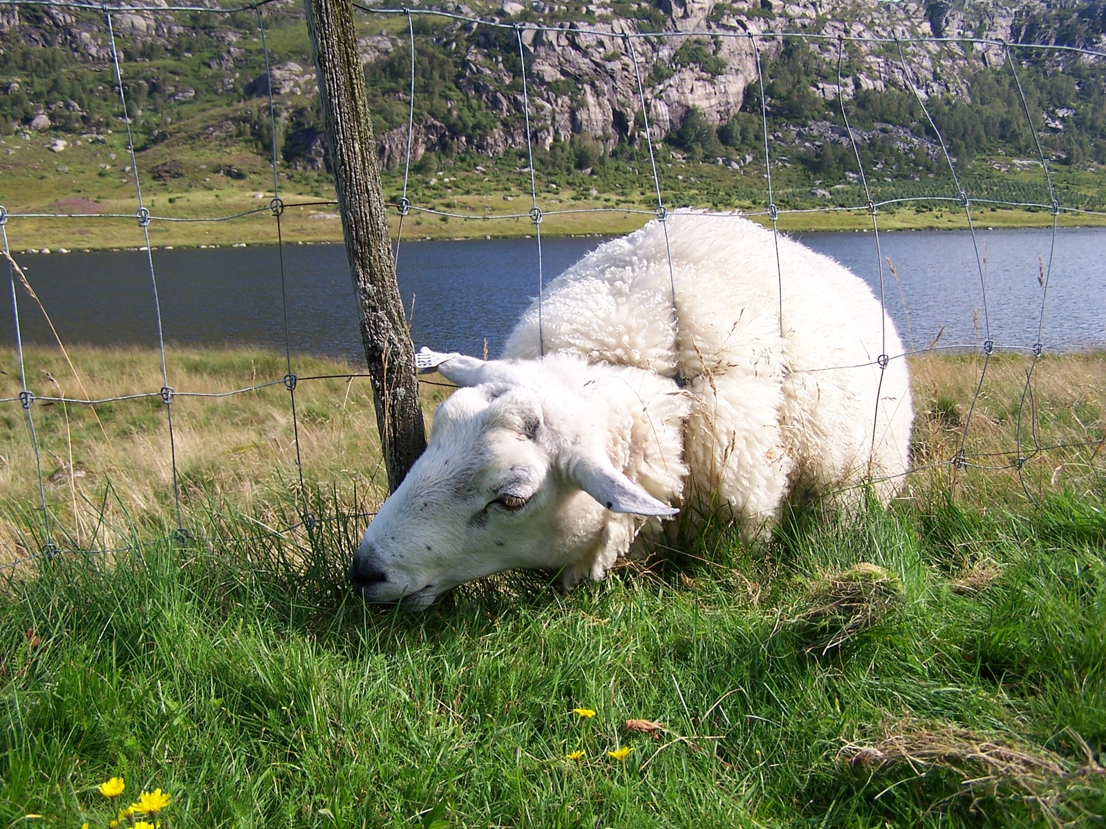 Als wir mal auf dem Weg nach Stavanger waren,haben wir auch mal eine Pause gemacht und siehe da,da kamen auch schon ein paar Schafe an,waren neugierig und steckten den Kopf durch den Zaun.