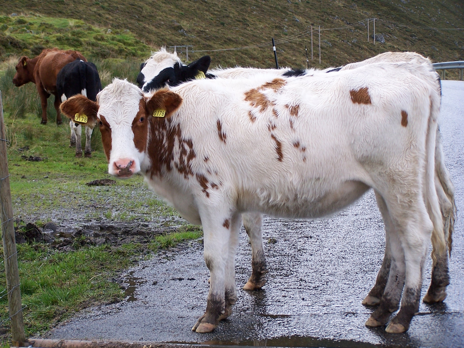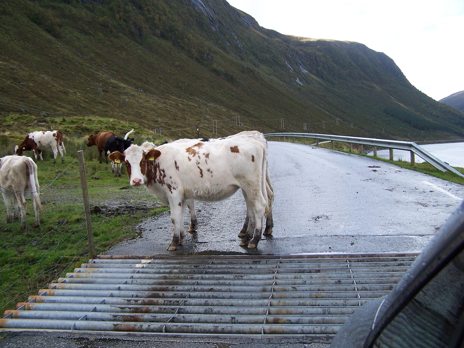Und hier ist noch ein Fuchs,der im letzten Jahr an unserem Ferienhaus in Syvde vorbei geschaut hat,dann aber reißaus nahm.Und noch ein paar Kühe,die wie angewachsen auf der Straße standen und einfach kein Schritt vorwärts gemacht haben.