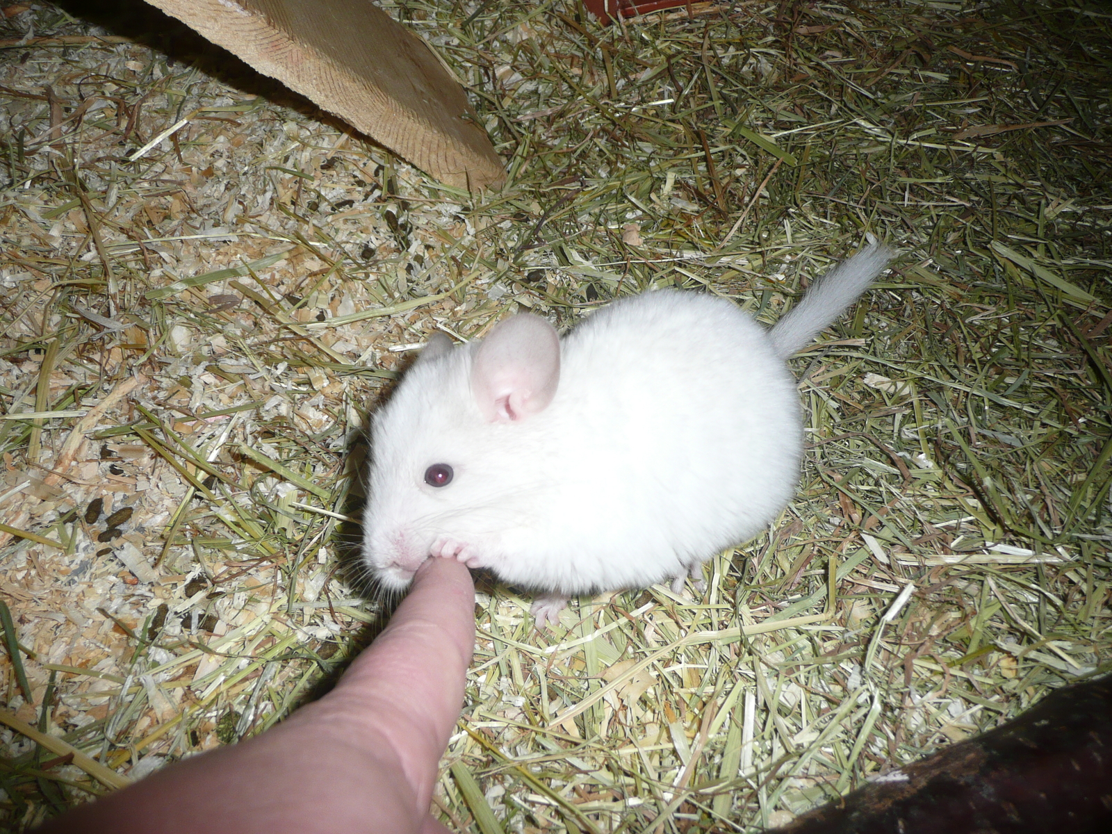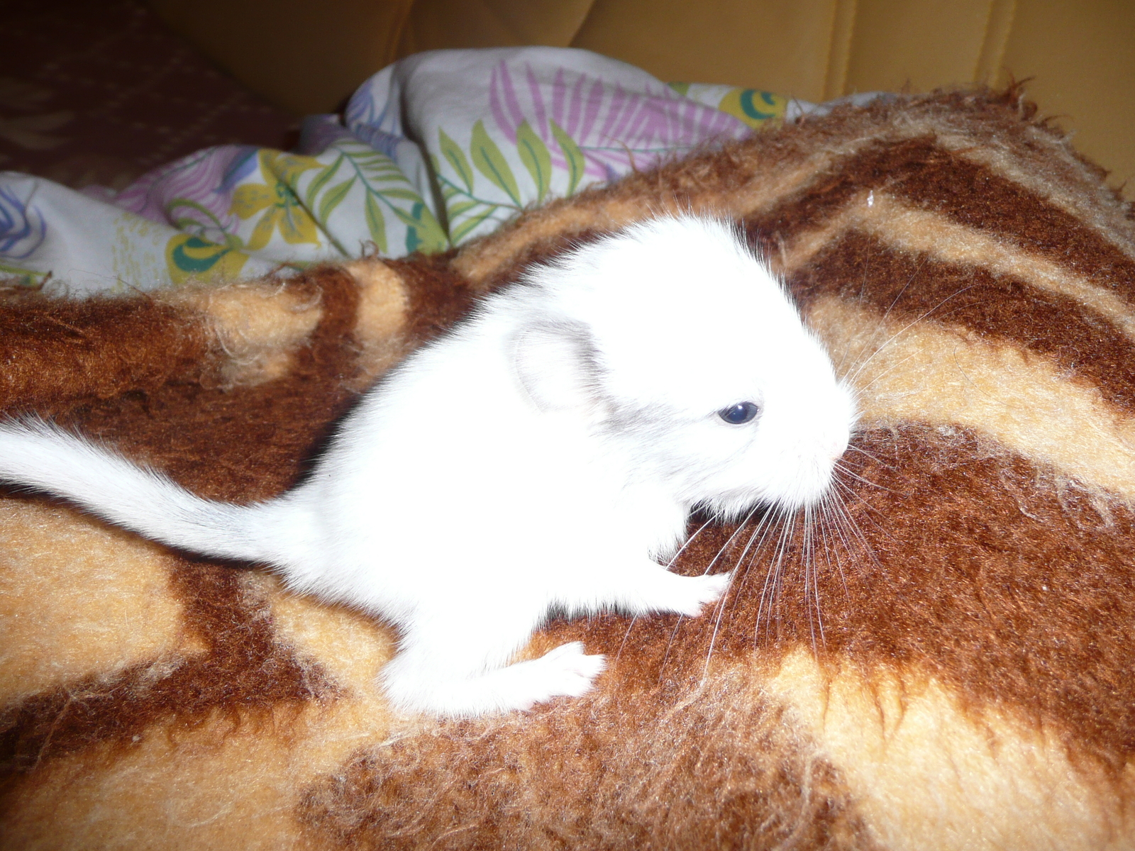 Genau das sind unsere Chinchillas.Die gibt es in vielen Farbvarianten.Standart ist natürlich grau.Die sind bei uns alle Handzahm.Einige stammen aus eigener Zucht und ein paar sind ausgesetzte Findelkinder und dürfen bei uns ihren Lebensabend verbringen.Der weiße Chinchilla ist schon 13 Jahre alt und somit ein Senior.Hier noch zwei Bilder vom Nachwuchs.Die Drillinge waren zum Zeitpunkt des Fotos noch keine Stunde alt.