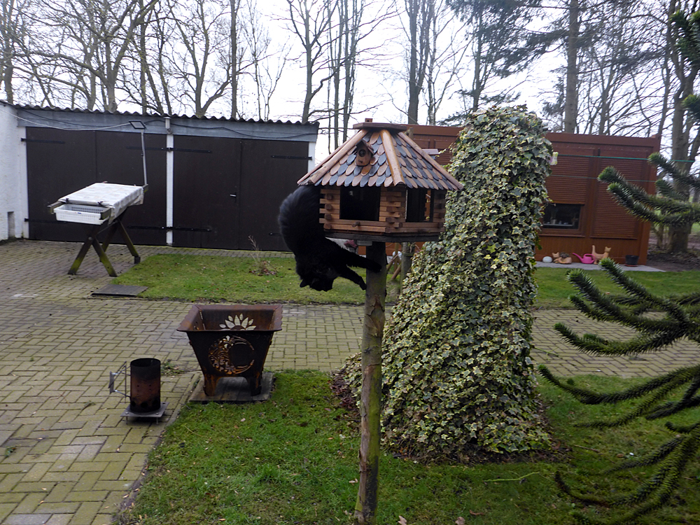 Der Sperber schaut ganz nachdenklich in das leere Futterhaus - die haben wohl alle lieber das Weite gesucht. Schöner Schnappschuß.