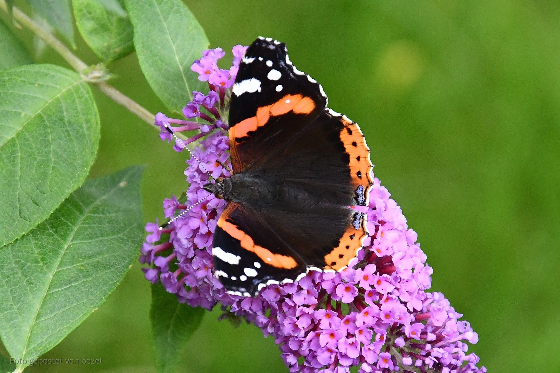 Immer wieder gern gesehen - der Admiral. Hier am Schmetterlingsflieder - laut verschiedener Quellen ein invasiver Neophyt. Der soll Schmetterlinge sogar süchtig machen