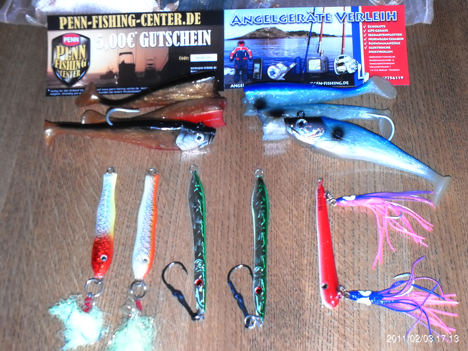 anbei ein bild von den ködern die ich für den gutschein erworben habe und die mir heute portofrei zu gekommen sind.:wave::Danke: