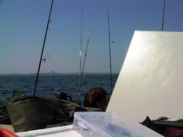 waren bei strahlendem Sonnenschein ,wenig Wind (was sich später noch ändern sollte) unterwegs um vor Travemünde irgendwas an den Haken zu kriegen. bei dem irgendwas blieb es aber auch,Ostwind(finde ich soooo langsam zimlich zum K.....n)der sich im Laufe des Tages zu Windstärke 5 aufbaute hat den Fischen wohl ganz gehörig den Hunger versaut.Gefangen wurden gigantische 3 Dorsche,1 Hering, 1 Hornhecht und 3 Platte wobei Bernd mit dem silbernen Buttlöffel einen wirklich schönen Fisch erwischte