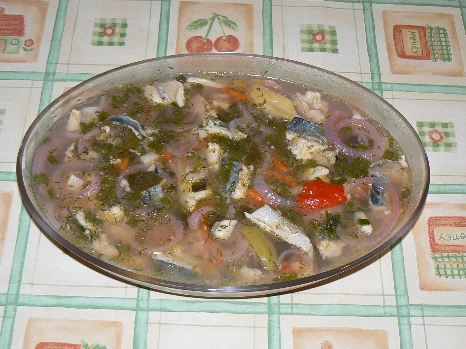 fest zu werden. Es handelt sich um Makrelen in Gelee!