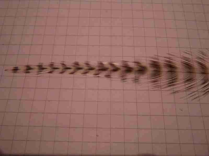 Das sind Hechelfedern von einem " Grizzly " - Hahnenbalg.Ich zeig euch hier ein schon etwas gerupftes Exemplar.Die Bänderung imitiert die Zeichnung von vielen Jungfischen!!