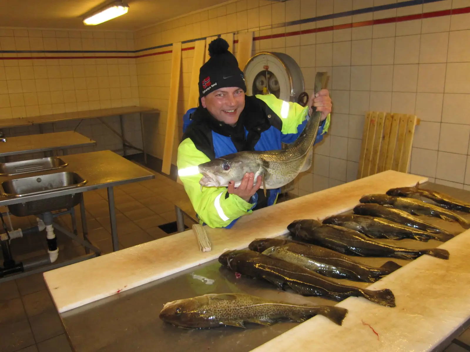 Heute war Angeln bis Mittag möglich, dann zog der angekündigte Sturm auf und wir konnten die gefangenen Fische versorgen. Es gab heute ausschließlich Küchendorsch und Micha konnte einen 80'er Leng landen.