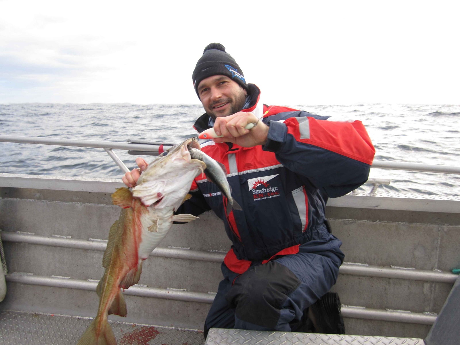 Die ersten paar Angelstellen waren Fehlanzeige. Nach ein wenig Suchen konnten wir Seelachsschwärme finden, wo auch dann die ersten Dorsche gelandet werden konnten. Die Tour am Nachmittag brachte ausser Regen nichts mehr.