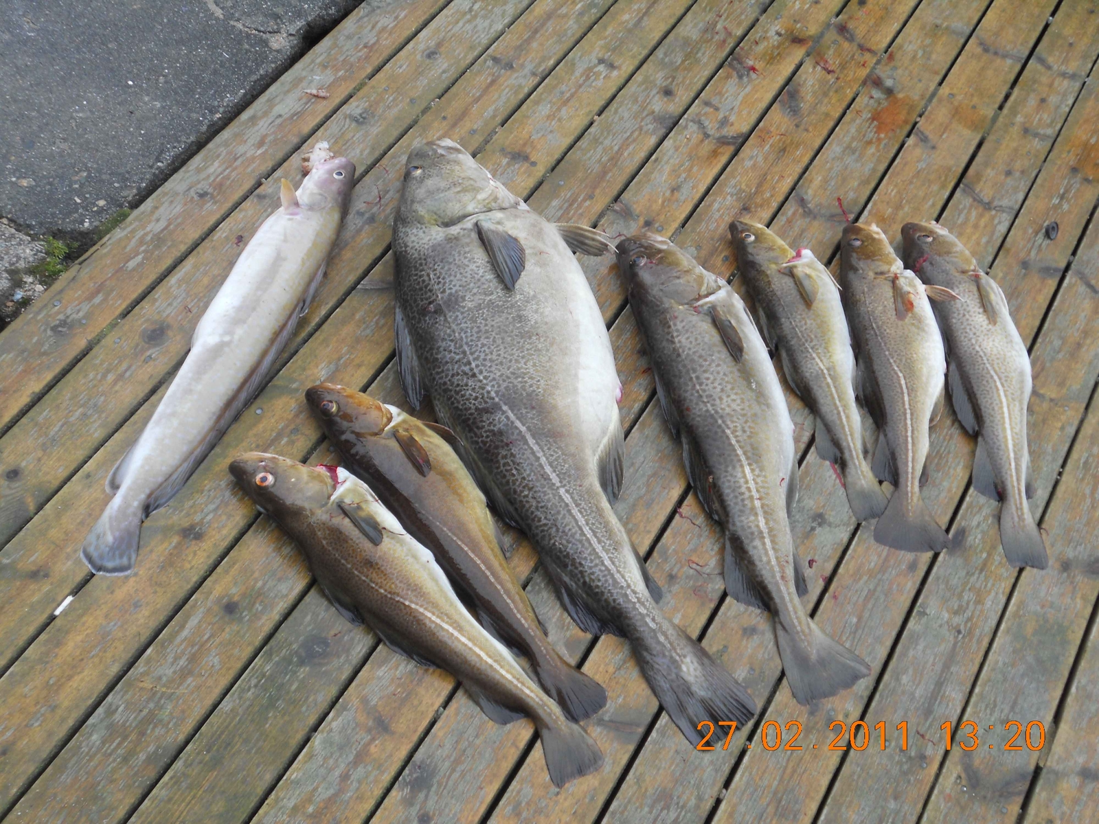 Die ersten paar Angelstellen waren Fehlanzeige. Nach ein wenig Suchen konnten wir Seelachsschwärme finden, wo auch dann die ersten Dorsche gelandet werden konnten. Die Tour am Nachmittag brachte ausser Regen nichts mehr.