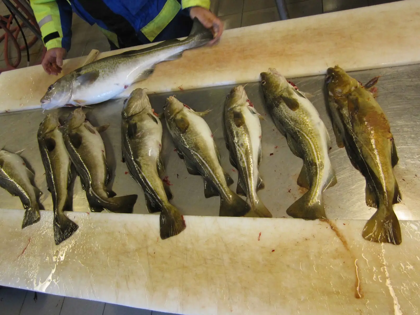 Heute war Angeln bis Mittag möglich, dann zog der angekündigte Sturm auf und wir konnten die gefangenen Fische versorgen. Es gab heute ausschließlich Küchendorsch und Micha konnte einen 80'er Leng landen.
