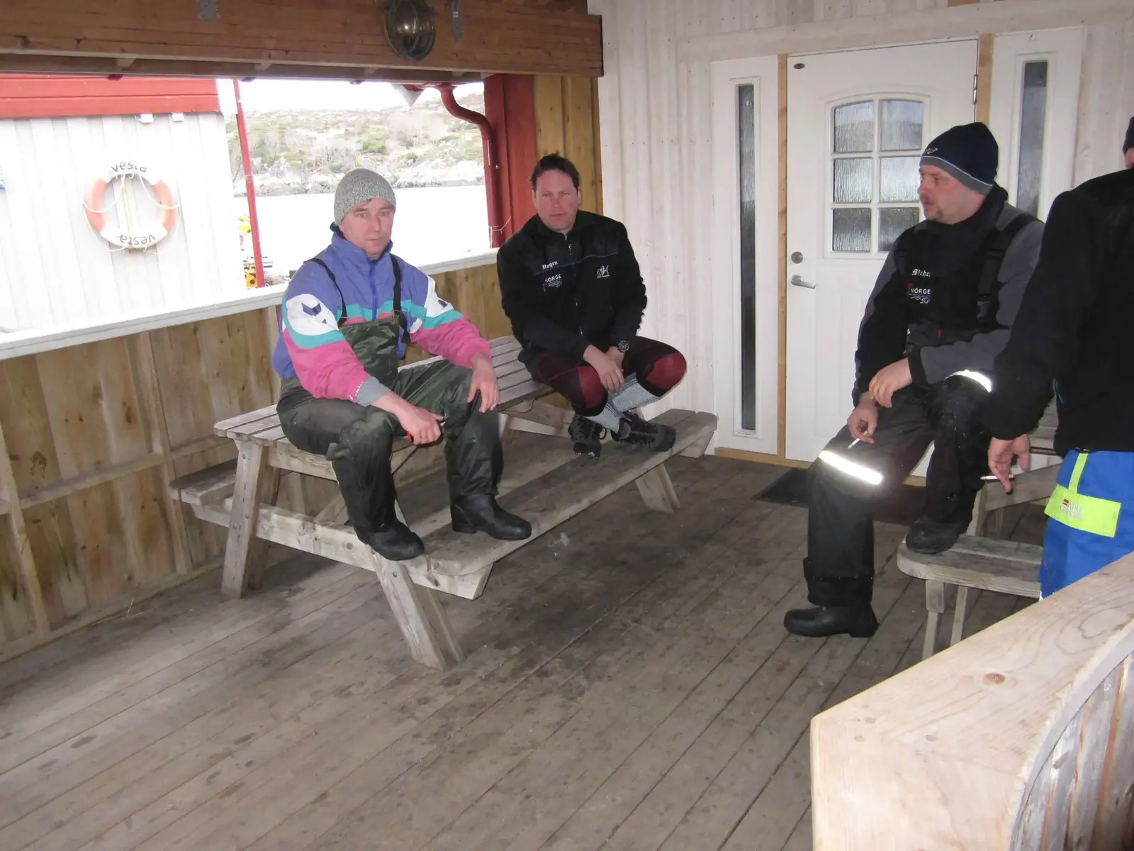 Die zwei Zentner, die uns heute Petri überließ, setzten sich aus 27 Dorschen, einem Schellfisch und Leng zusammen. Pünktlich nach dem Fischen begann der angekündigte Sturm (23 m/s) - nicht lustig, uns doch egal - weil schon geduscht und am schillen. ![]()