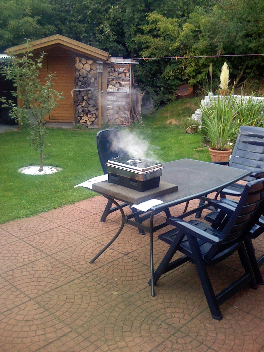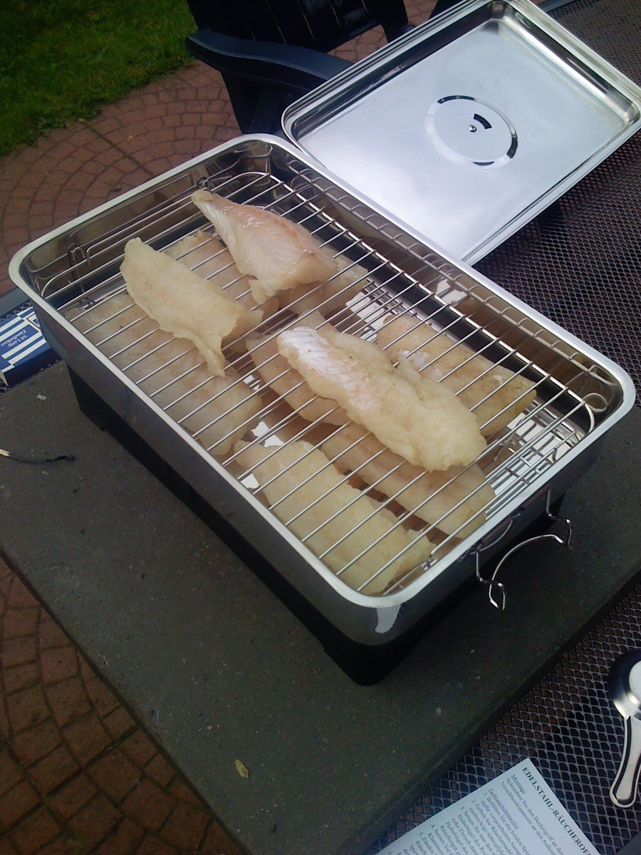 Um es vorweg zu nehmen, der Fisch ist glaube ich zu doll geräuchert worden. Wußte auch nicht wieviel Buchenmehl dort rein soll. )