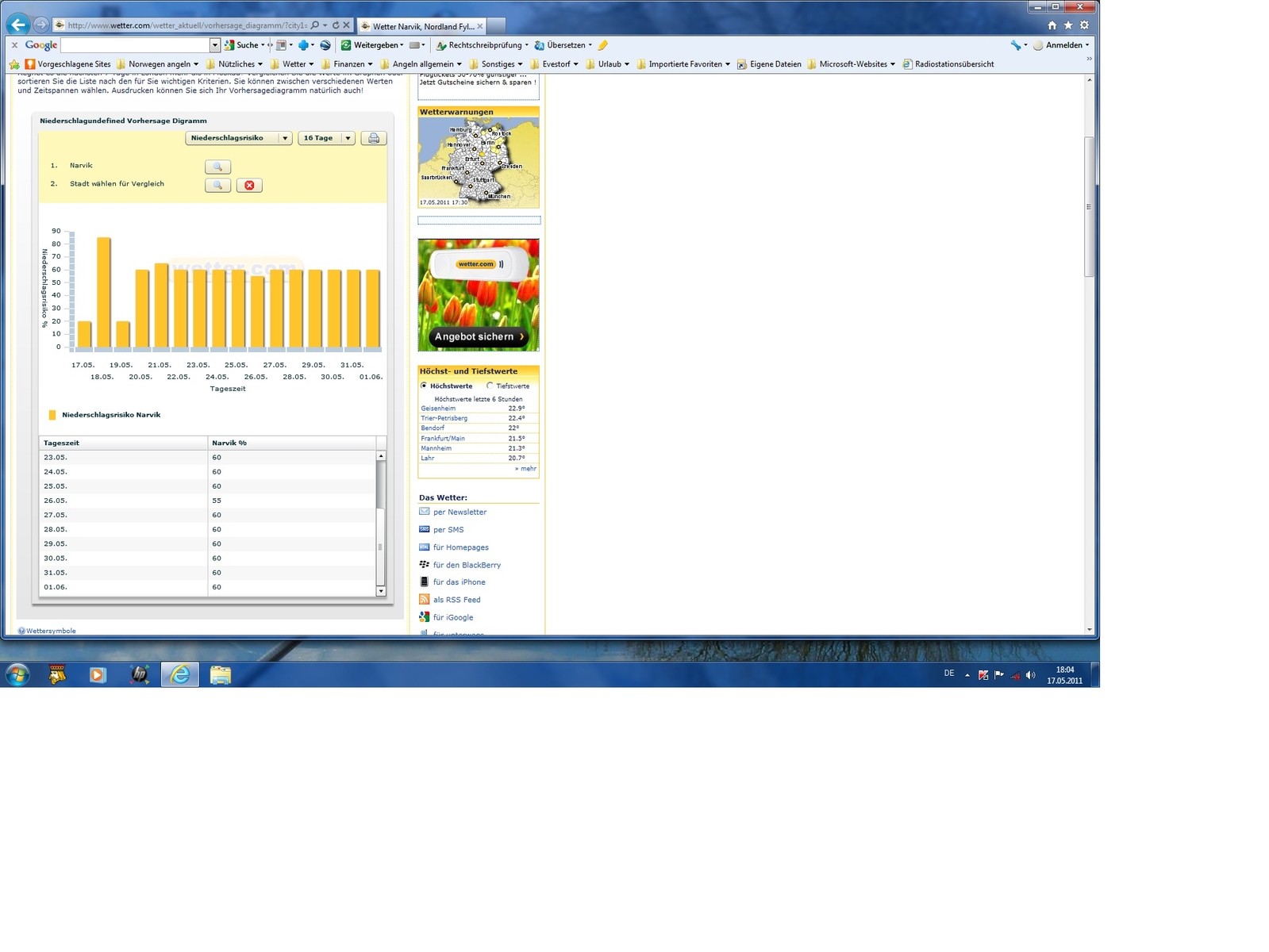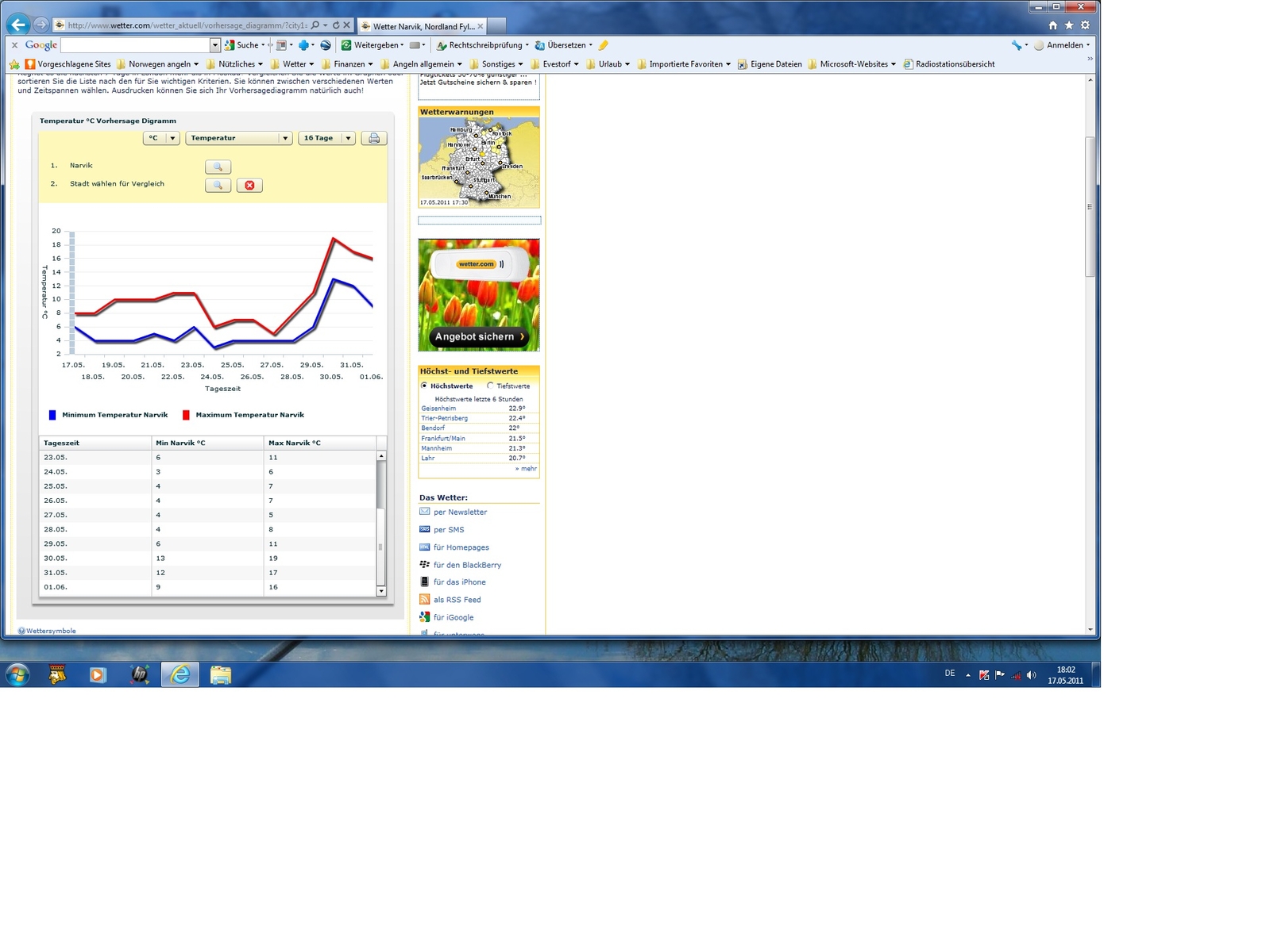 Dabei sind Mai und Juni dort oben (im langjährigen Mittel) die mit Abstand