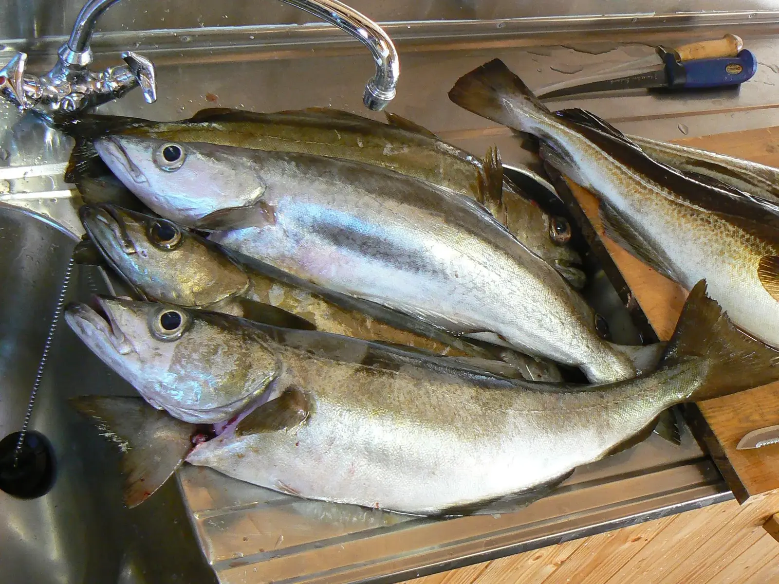 Hier 3 Bilder, wie es zur Zeit überall hier läuft:biglaugh::biglaugh::biglaugh:. Unter den Köhlern liegen auch noch schöne Dorsche. Die Gruppe hat auch schon Leng, Pollack usw. gefangen. Das war der 1. Angeltag mit dem Druck, bloß Fische zu fangen. Es waren auch einige Butten mehr....