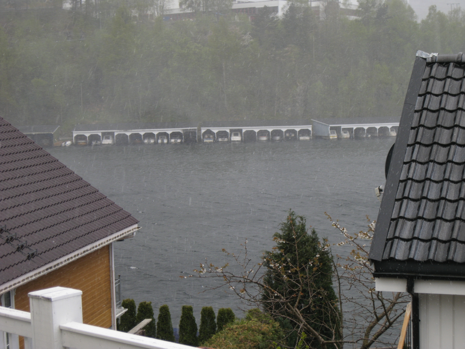 Es stürmt und schneit in Flekkefjord mit Hagelschauern.......![]()