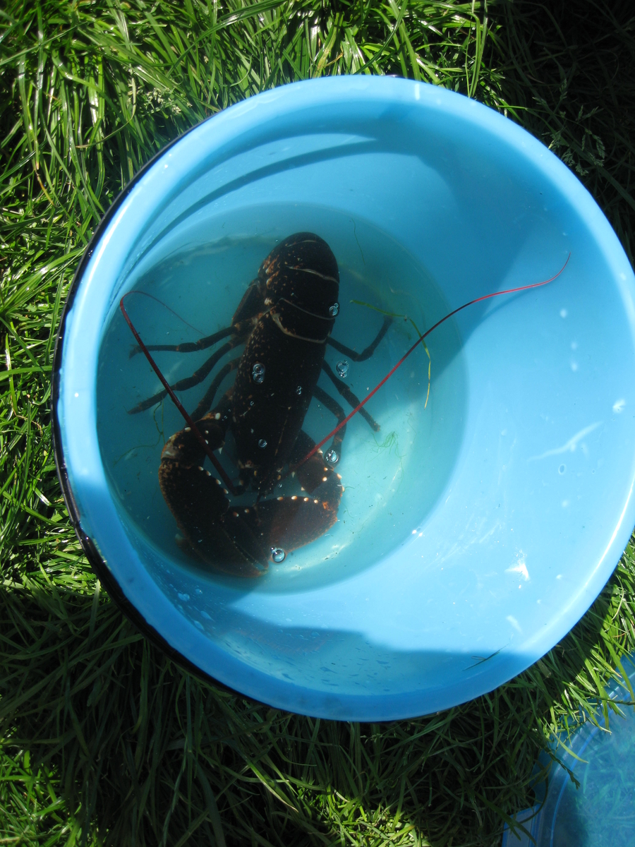 Angel: Rafael fängt schon Hummer mit einer Wäscheklammer und Muschelfleisch vom Ufer aus. Der Hummer ist wieder in seinem Element und wir hoffen, das er nach dem 01.10. nochmal vorbei kommt