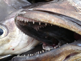 Dieses Jahr haben wir zum erstem Mal Seehechte gefangen, haben schon eindrucksvolle Zähnchen.