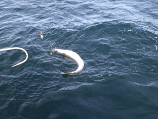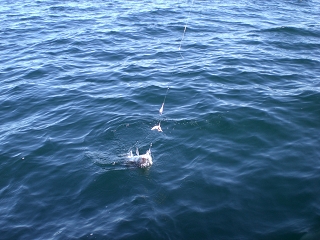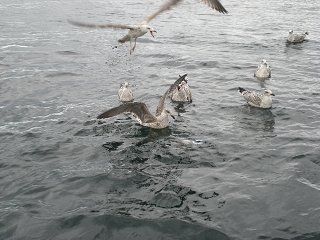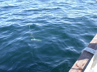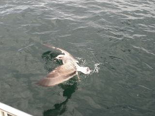 Wenn man die Naturködermontage ins Wasser ließ und diese nicht schnell auf Tiefe brachte, lief man Gefahr einen dieser gefiederten Gesellen gleich mit zu versenken. Die Möwen flogen jedem ausgeworfenem Pilker hinterher und versuchten ihn zu erwischen.Auswerfen war fast unmöglich.
