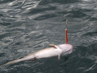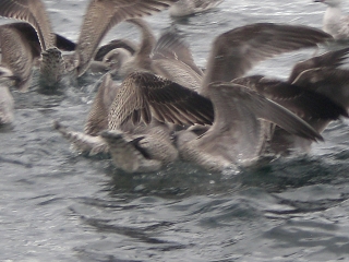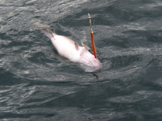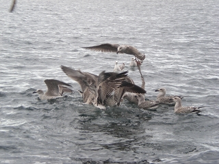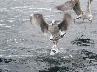 Wenn man die Naturködermontage ins Wasser ließ und diese nicht schnell auf Tiefe brachte, lief man Gefahr einen dieser gefiederten Gesellen gleich mit zu versenken. Die Möwen flogen jedem ausgeworfenem Pilker hinterher und versuchten ihn zu erwischen.Auswerfen war fast unmöglich.