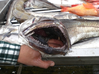 Dieses Jahr haben wir zum erstem Mal Seehechte gefangen, haben schon eindrucksvolle Zähnchen.