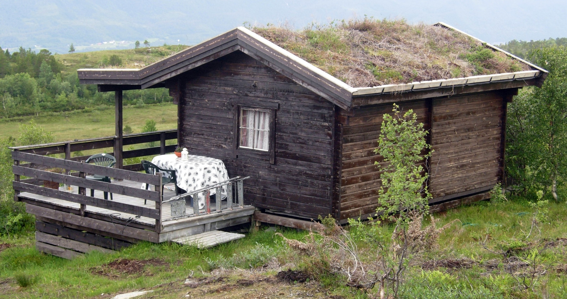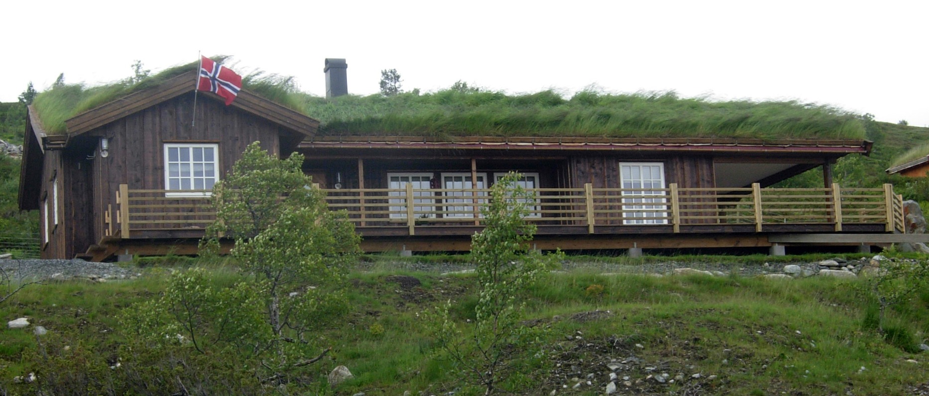 Etwas weiter oben dann das, was sich heutzutage so Hütte nennt: Strom, fliessend Wasser, Kamin, Sauna, Whirlpool, Breitband usw usw. Komplett-Preis ca. 3,5 Millionen NOK.