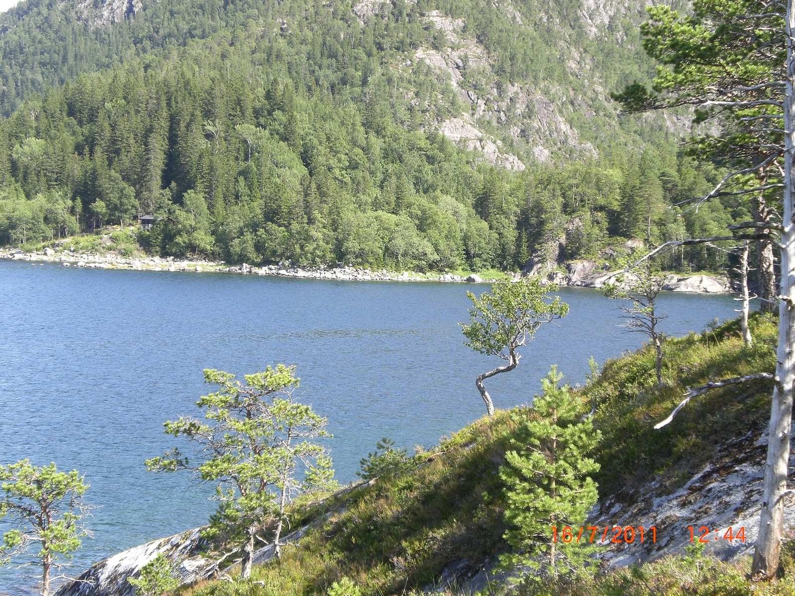 Also immer schön in Ufernahe bleiben war das Motto, nicht gut. (Bild 1) Zeigt etwa so nach der Hälfte der Strecke was noch kommt, muss bis zu der kleinen Hütte, nur. Leider neigt der Tosenfjord dazu teils steile Ufer zuhaben. Weiter rein in den Urwald, (Bild 2) nur ein paar Höhenmeter mehr aber ich will ja angeln.![]()