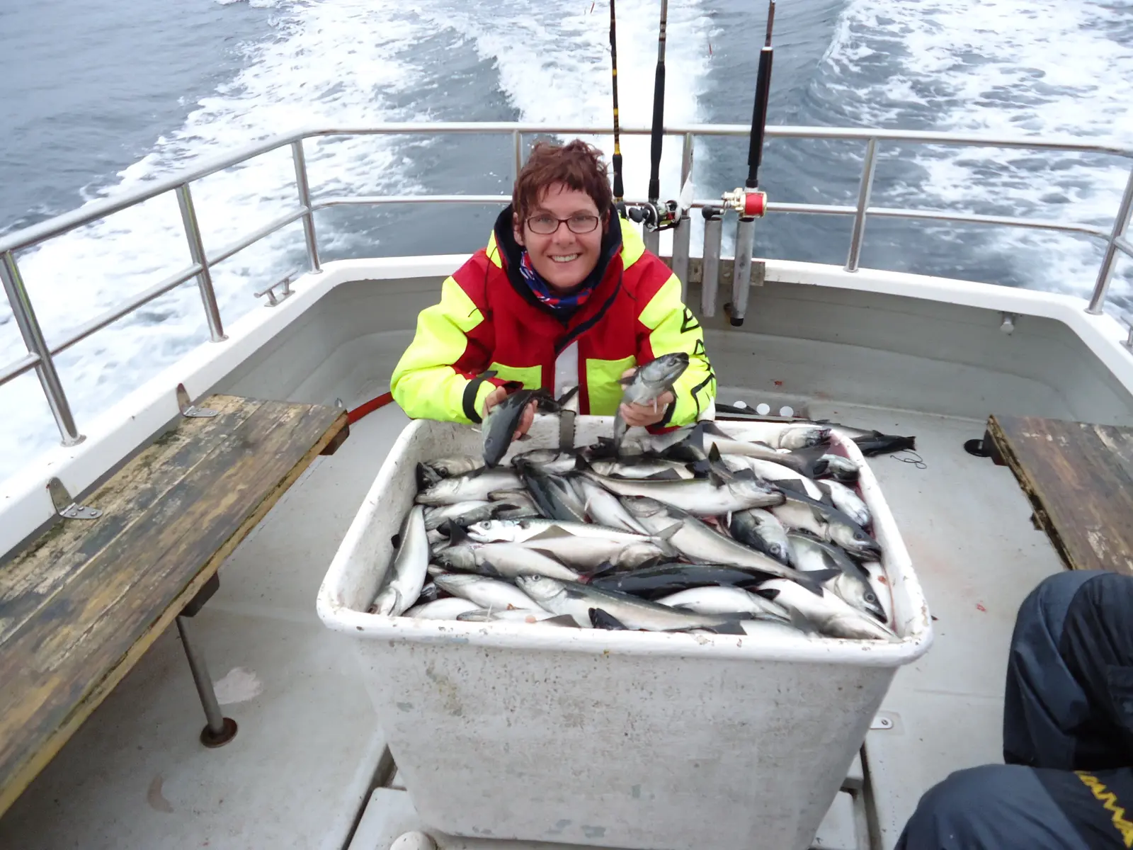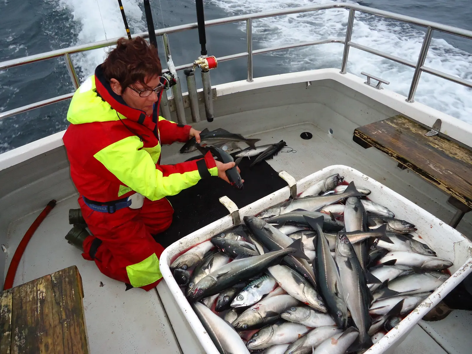 Bei jedem Mal einholen kamen 4-5 Köhler der 1,5-2kg klasse hoch und so füllte sich die ca 150kg fassende Bütt an Bord innerhalb von einer drift.