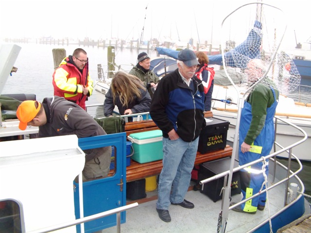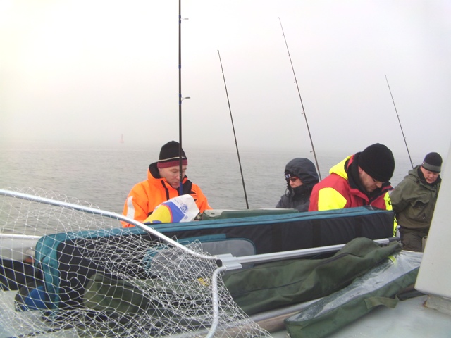 So, das war Tour 1,Nach Frühstück auf der Nautilus gings um 7 Uhr auf den Kutter,Nebel, Null Wind und Null Drift ,keine guten Vorzeichen. der Nebel und etwas Niesel verschwanden aber und wir hatten bestes Wetter,bloß die null Drift blieb uns erhalten.40gram Grundblei blieben auch in 20m Tiefe am Fleck.Gegen Mittag machten wir uns auf Richtung Grömitz zum Walkürengrund.Während der Fahrt gabts super gut schmeckende Lachs- Häppchen von Gravad Lachs HamburgLC:)