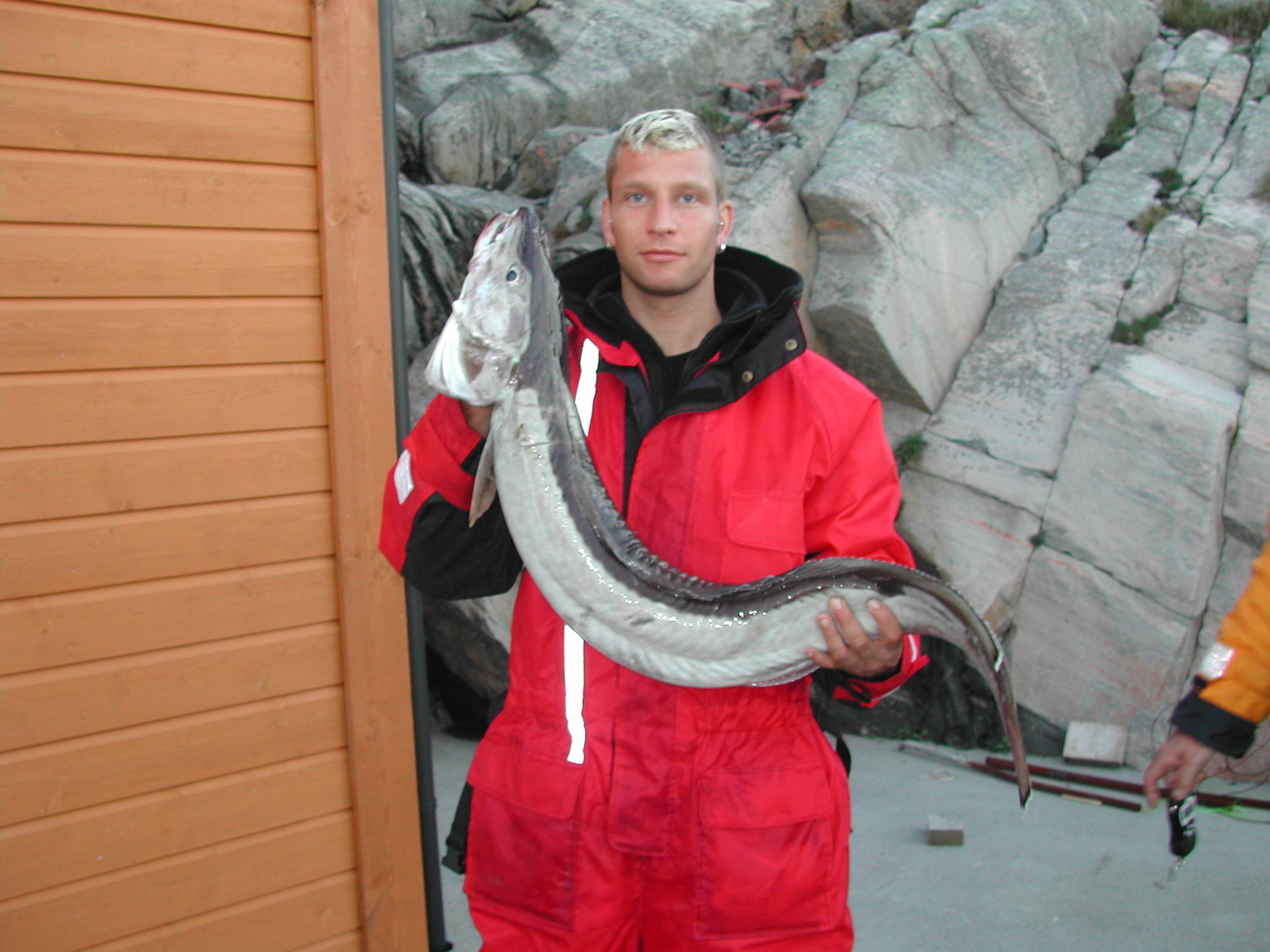 Mittwoch ein neuer Tag- und wieder der Blick durchs Fenster und wieder ENTENTEICH-ALARM. Diesmal wollte Thomas sich die Chance nicht entgehen lasse und da es ihm auch besser ging fuhr er heute mit uns raus. Es sollte auch für ihn ein Glückstag werden. Kaum angekommen konnte er auch mal das Glücksgefühl spüren richtige Fische zu pumpen. Wieder ging es los mit Lumb und Leng. Wobei die Leng`s alle über 1m waren und ich das Glück hatte ein Lumb von 95cm und 11Pf nach oben wuchten zu dürfen. Dazu kamen noch paar Dornhaie, Seehechte und Pollack. Ich möchte jetzt hier nicht jeden einzelnen Drill aufzählen nur einen von meinen muss ich noch mal loswerden. Wie immer bekomm ich kaum runtergelassen auf Grund ein heftigen Ruck in der Rute nach den Anhieb und Sicherstellung das der Fisch meinen Haken auch zu spüren bekommen hat begann ich zu pumpen. Und wie immer rätselten wir was da unten wohl dran sei. Mittlerweile befanden wir uns bei einer Wassertiefe von ca. 165m und ich hatte kein Schnurrzähler- na Mahlzeit. Das übliche Klopfen vom Leng war nicht da …….?????? Lumb????? Großer???? Neeneee Lumb konnte es auch nicht sein – irgendwie beschäftigte mich der Fisch mehr als die anderen. Mal nahm er Schnurr mal durfte ich bisschen was wieder aufholen – was ist da nur am Ende meiner Schnurr – was Kämpft da so verbissen?? Oder war es mein Traumfisch – ein Dorsch jenseits der 1m Marke. Jo das könnte es sein. Vorsichtig und doch hartnäckig pumpte und erkämpfte ich mir jeden Meter. Meine Arme spürte ich schon längs nicht mehr und der Unbekannte kämpfte bis zum Schluss durch. Dann aber doch endlich erschien was unter der Wasseroberfläche aber immer noch war nicht zu erkennen was mir diesen Wahnsinns Drill bescherte. Eines war aber schon zu erkennen der Traumfisch war es nicht. Dann ein Aufschrei ein Boahhh – das gibt es doch nicht und mit Hilfe des Gaffs wurde der Fisch ins Boot gehievt. Dann erst konnte ich ihn sehen. Mein 1. Seehecht und das auch noch mit den stolzen Maßen von 1,02cm und13,5 Pf. Völlig fertig aber faszinierend schaute ich mir das Prachtexemplar an.:);):) Am liebsten hätte ich ihn geknutscht aber seine Zähne sahen nicht zum küssen aus. Und das bewies er auch gleich indem er sich unvermittelt umdrehte und Thomas im Arm biss – mal gut das kein T-Shirt Wetter war und wir unsere dicken Anzüge an hatten so lief das ganze glimpflich ab:mad::mad::mad:. Willi und Rene` hatten dann jeweils ein kurzen Drill der sie beide heute noch beschäftigt wo jedoch jedes Mal der Fisch gewann. Rene´ bekam bei seinem Drill fast nicht einmal die Rute von der Bordwand hochgehoben, da nahm der Fisch nur Schnurr und Schnurr – Rutenspitze schon im Wasser und dann weg……………Schade – aber wir können nicht immer Gewinner sein und dieser Fisch hat sich sein Weiterleben hart erkämpft. Jeder Tag neigt sich mal zu Ende nun auch dieser und mit stolz geschwellter Brust fuhren wir wieder Richtung Heimathafen. Dort angekommen wie immer messen wiegen fotografieren und filetieren. Fische für die Wertung gab es diesmal nicht. An Gewicht und Länge kamen wir diesmal um wenige cm oder gr nicht ran.