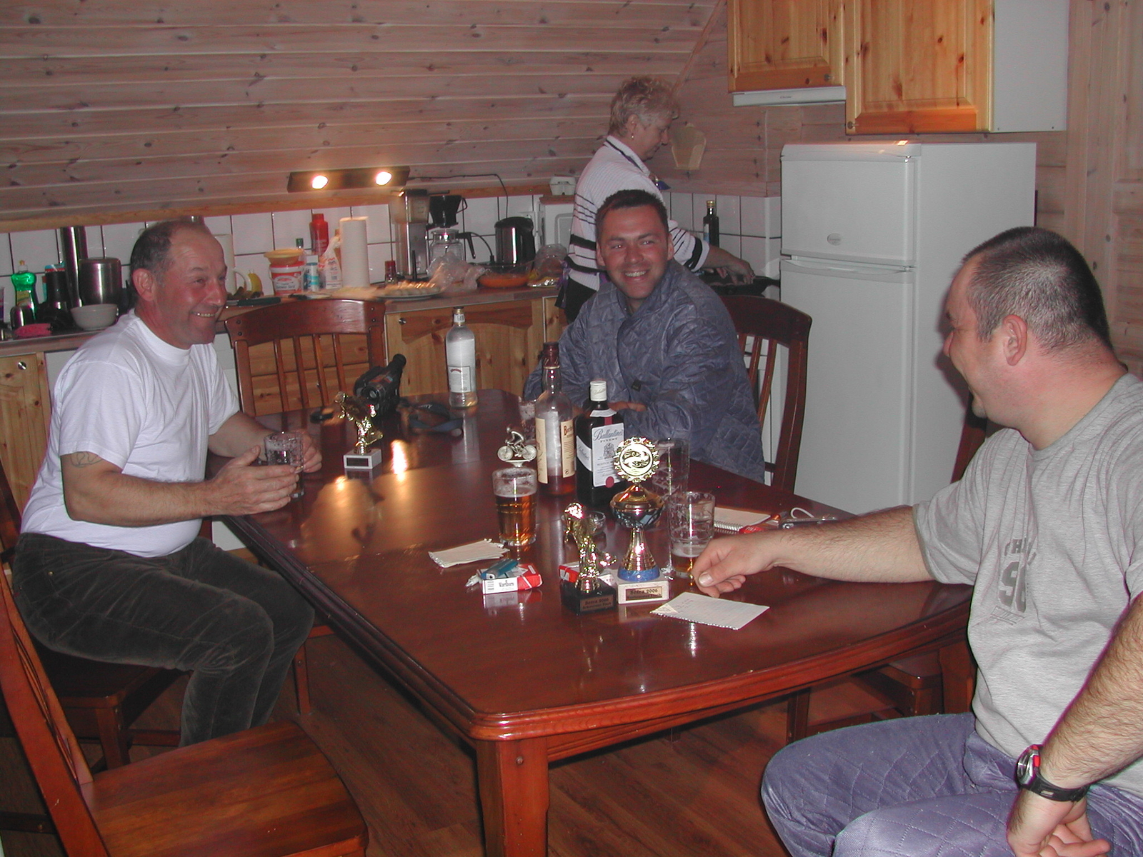 Sonntag selbes Wetter selbe Geschichte wie am Vortag (wie das wohl alles wieder enden wird). Wir nutzten diesen Tag um neue Stellen auszuprobieren – weit konnten wir eh nicht raus da auch hier das Wetter nicht so recht mitspielte. Aber die Lumb`s und Makrelen ließen uns nicht im Stich und so ging von Thomas ein Lumb von 57cm, von Lutz ein Pollack mit 5,2 Pf und von Rene` ein Schellfisch mit 7,00 Pf in die Wertung. Abends dann aber gab es doch noch eine Überraschung wenn auch keine die was mit den Angeln zu tun hat. Nach den Abendbrot beschlossen wir noch ein Schlaftrunk zu nehmen – eigentlich sollte der Whisky und der Klare nun kalt genug sein - lagen doch im Eisfach vom Kühlschrank – aber das Ding hieß ja nicht um sonst Eis-Fach und so stellten wir fest das sämtliche alkoholischen Getränke sich in Eis verwandelt haben. Ja ihr habt richtig gelesen selbst 40% Alkohol war GEFRORREN.:mad: Schreck in der Abendstunde. Man gut das wir das noch rechtzeitig bemerkt haben und die Flaschen nicht geplatzt sind.