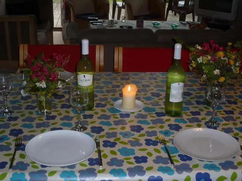 Blümchen auf den Tisch eine Kerze und Weißwein.
