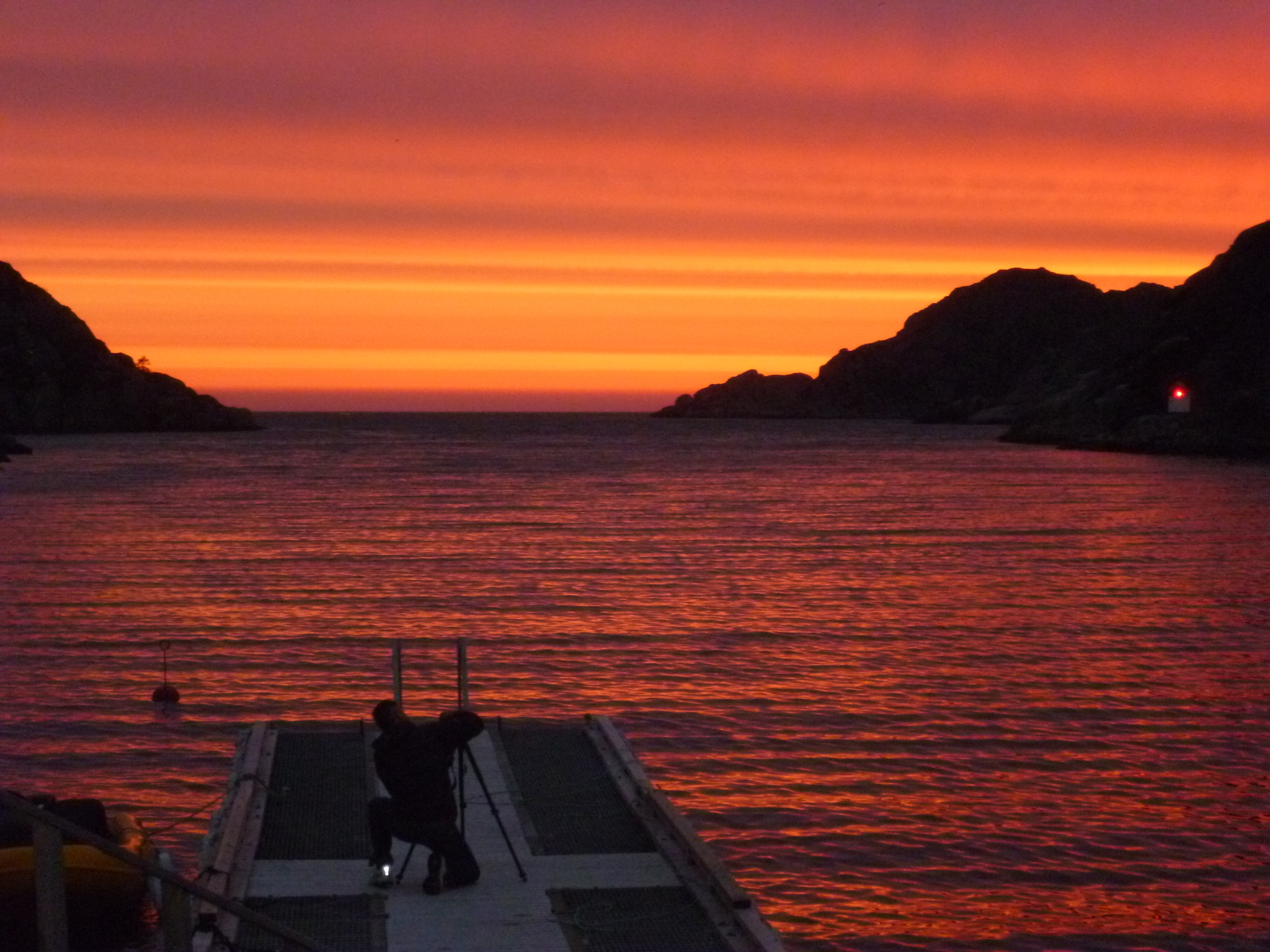 Bei meinen Fotos bin ich ganz sicher, das es Sonnenaufgang ist, denn in Bjørnevåg geht die Sonne über dem Farsundresort unter, das wäre eine ganz andere Perspektive.