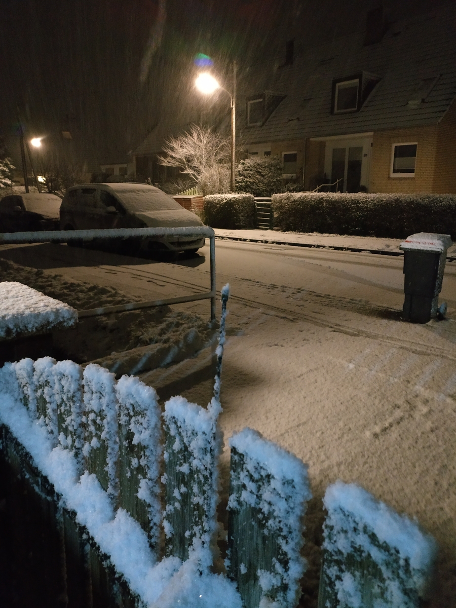 Ich brauche nicht nach Bayern fahren, seit rund 3 Stunden schneit es jetzt auch bei uns. Habe das Auto erst einmal bei mir vor die Garage gestellt. Die fahren (30-er Zone) immer noch die gleiche Geschwindigkeit auf der Straße. Unter 50 km/h ist kaum einer dabei. Der erste hatte sich schon mit dem Kantstein angefreundet und damit gebremst. Da wir hier den höchsten Punkt von Bramfeld haben, ist unsere Straße auch immer die erste, die glatt ist. Man kennt es ja schon, also runter mit dem Auto von der Straße. Es meldet sich eh keiner, wenn er Schaden anrichtet.