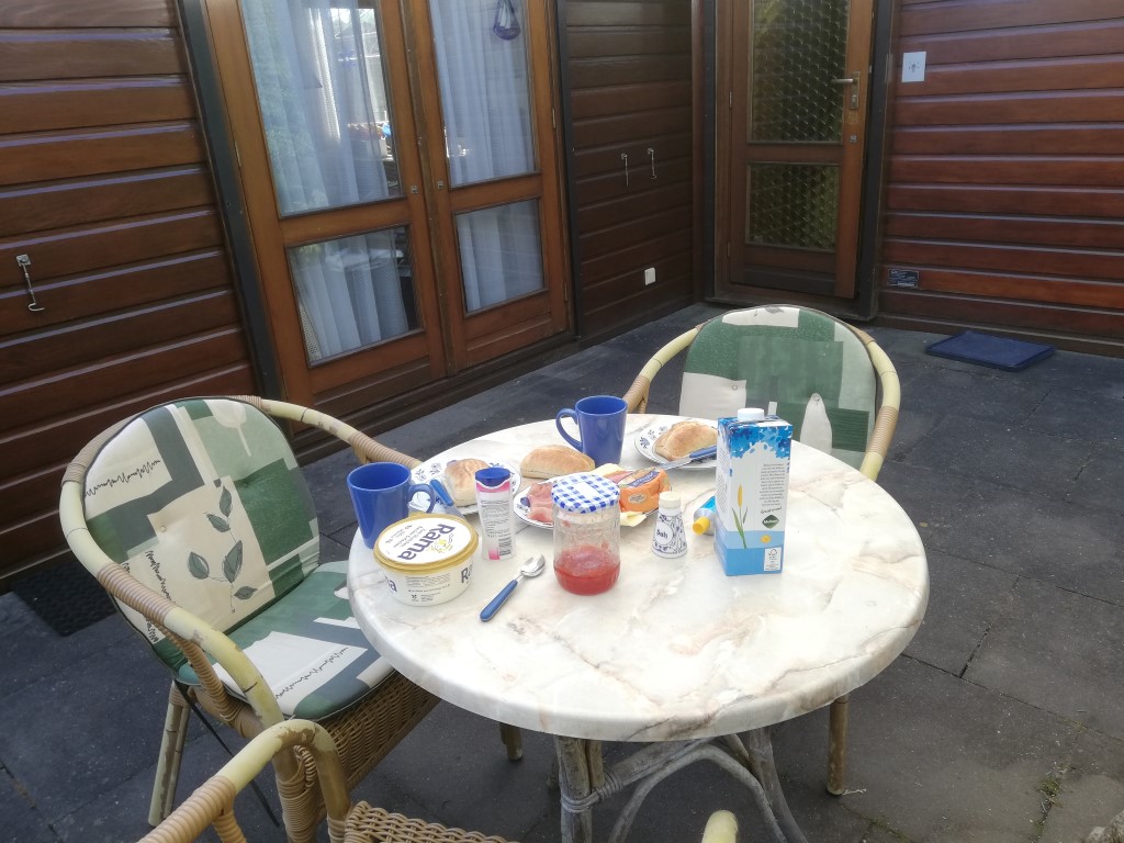 Vatertag und Frühstück mit klatschenden, liebeswütigen Karpfen. Gänsefamilie mit Küken, Frühstück unterm Sonnenschirm...