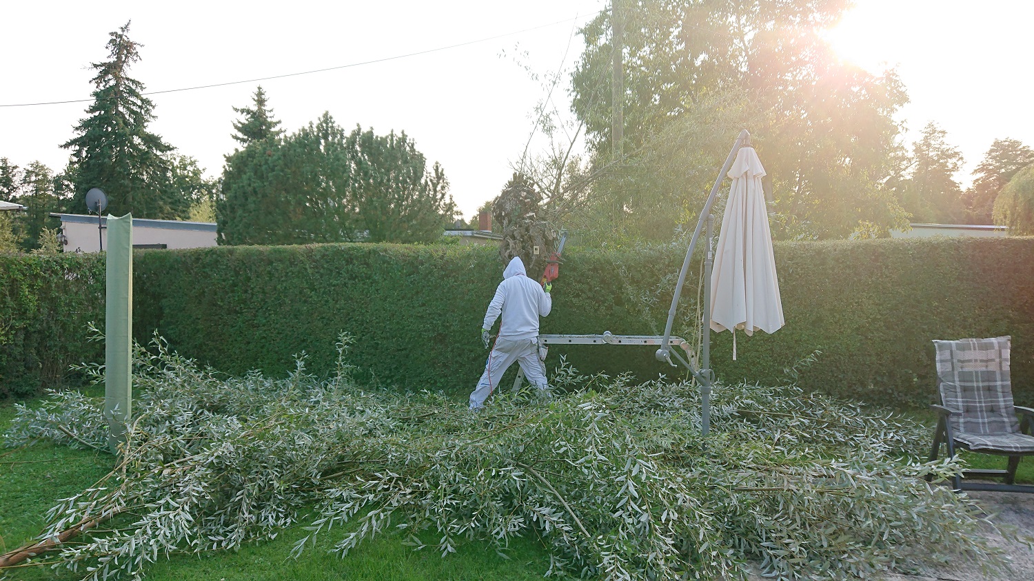 erstmal alle dicken Kübel weg, Bodo mit dem Bagger war dadann kleine Pflanzkübel setzen, Randsteine anbrngen und 4 cbm Mutterboden per Schubkarre abladen und verteilen, was für eine Knochenarbeit.