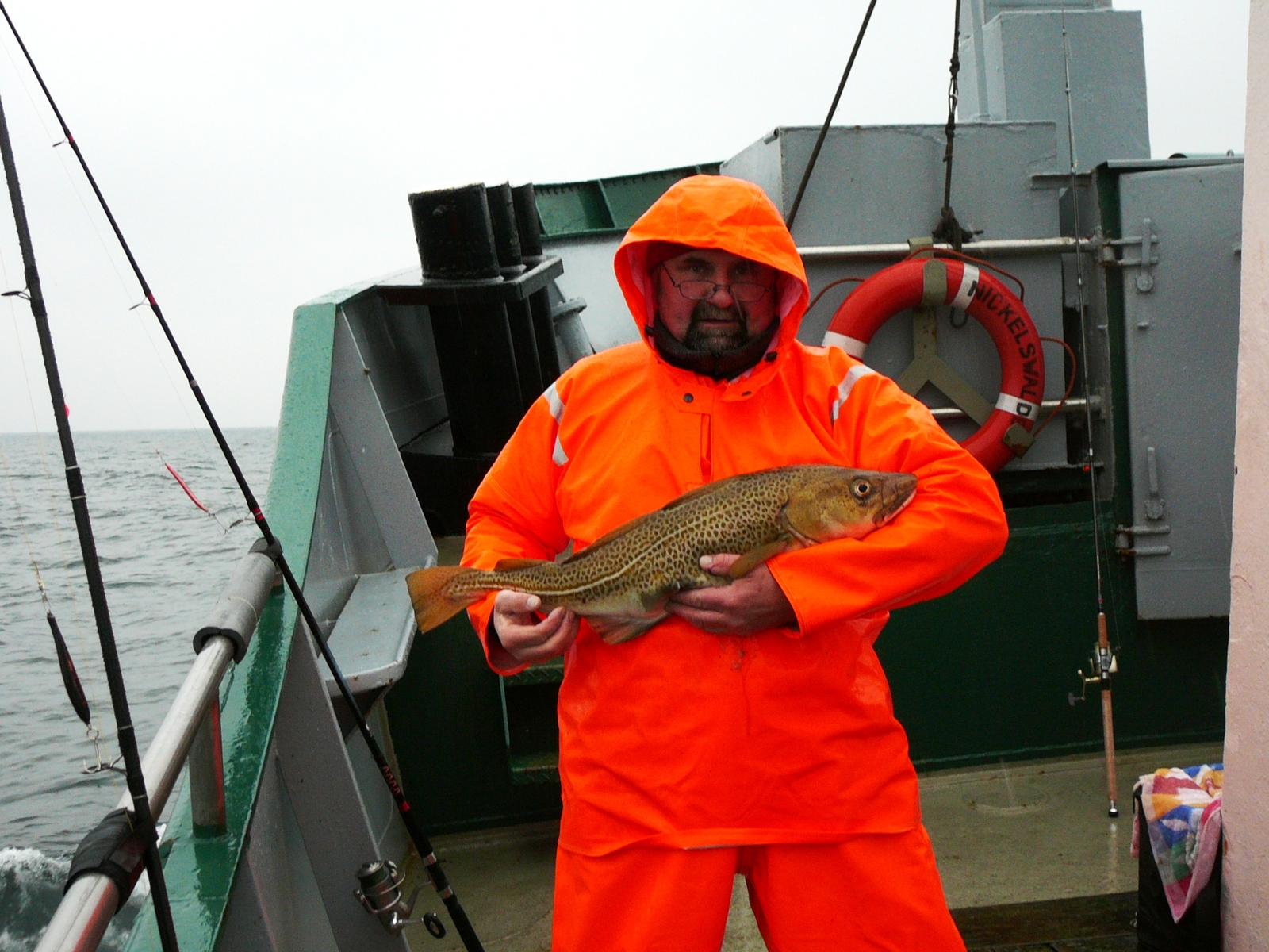 Mir persönlich hat die Ausfahrt ausgesprochen gut gefallen. Unmengen an Platz, ein richtig tolles Schiff, gutes Wetter und vor allem ein hervorragendes Essen. Die Ausbeute war zwar nicht so toll, aber immerhin eine 600prozentige Steigerung gegenüber meiner letzten Fehmanntour (Naffentour 2007), wo ich null Komma nix gefangen habe.