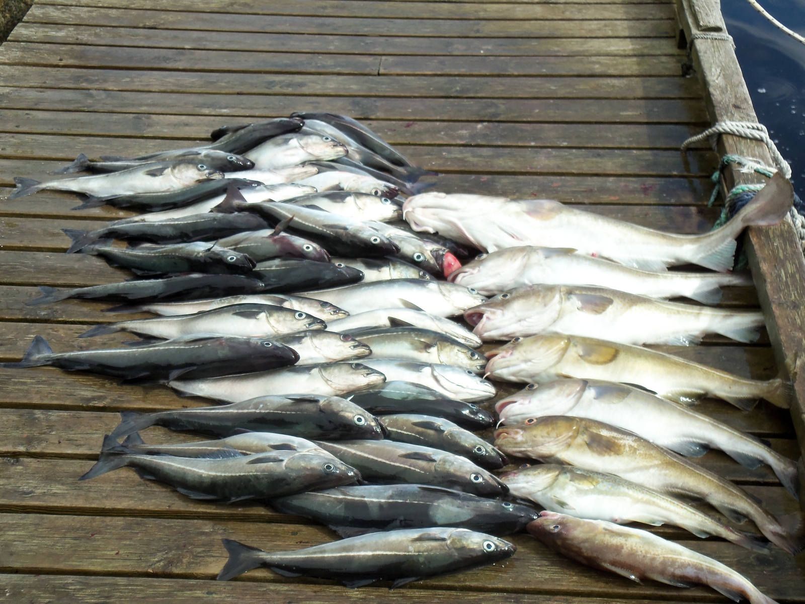 Außerdem hatten wir auch noch 30-40 große Seelachse. Gefangen wurde alles mit 120 g Pilker ohne Beifänger. Bis alles filetiert und weggeräumt war, war wieder ein schöner Angeltag vorbei, den wir bei einem schönen Abendessen und einem Tee mit Rum ausklingen ließen.